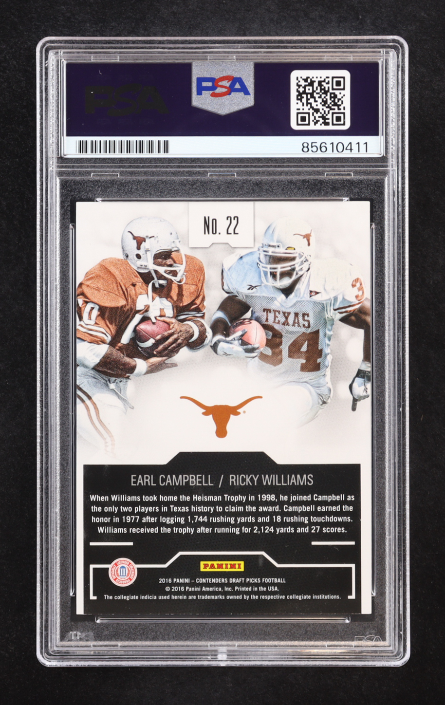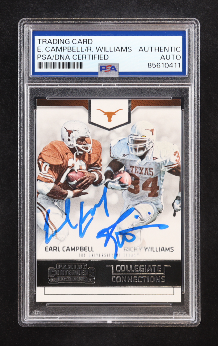 Earl Campbell / Ricky Williams Signed 2016 Panini Contenders Draft Picks Collegiate Connections #22 (PSA)