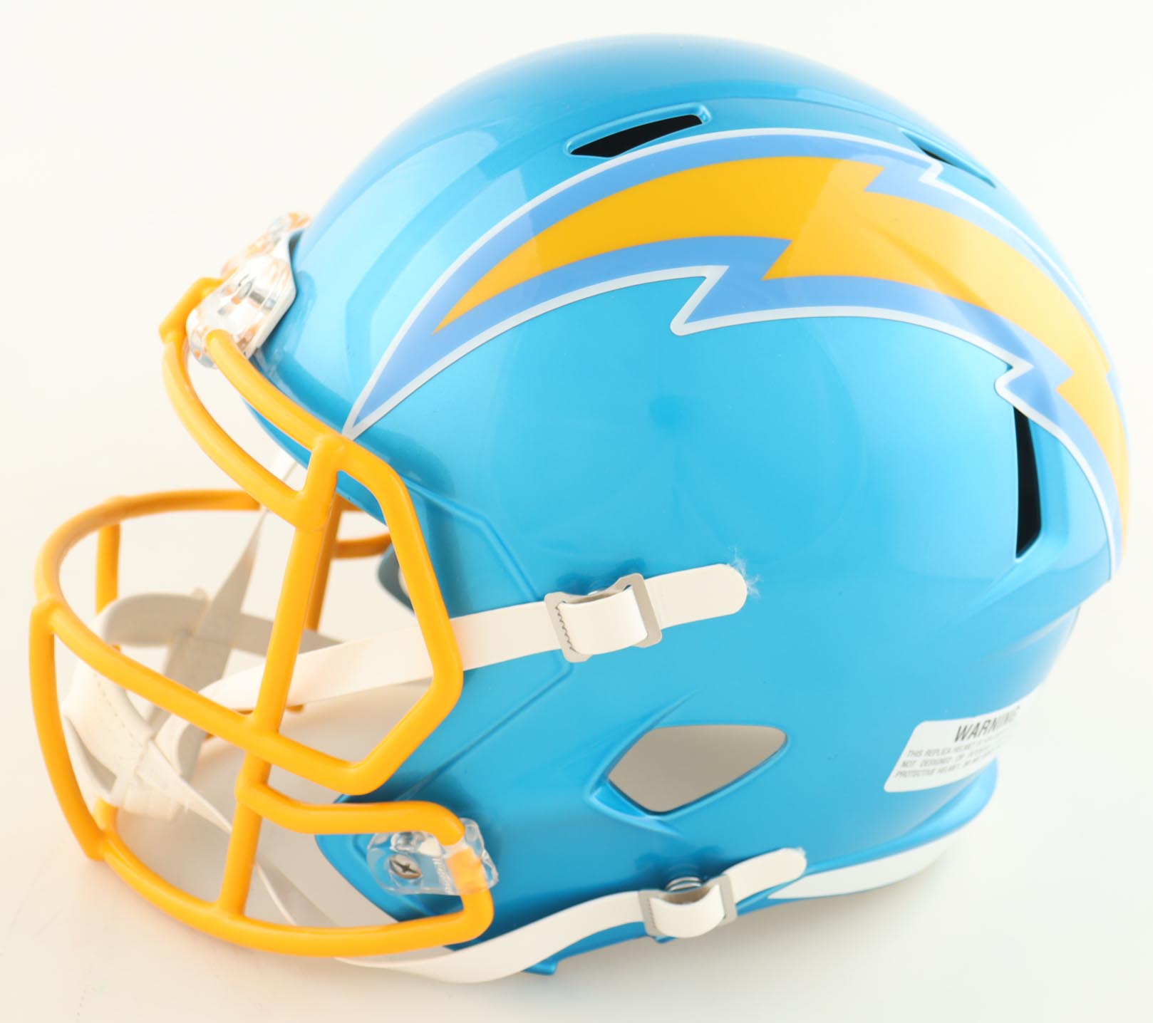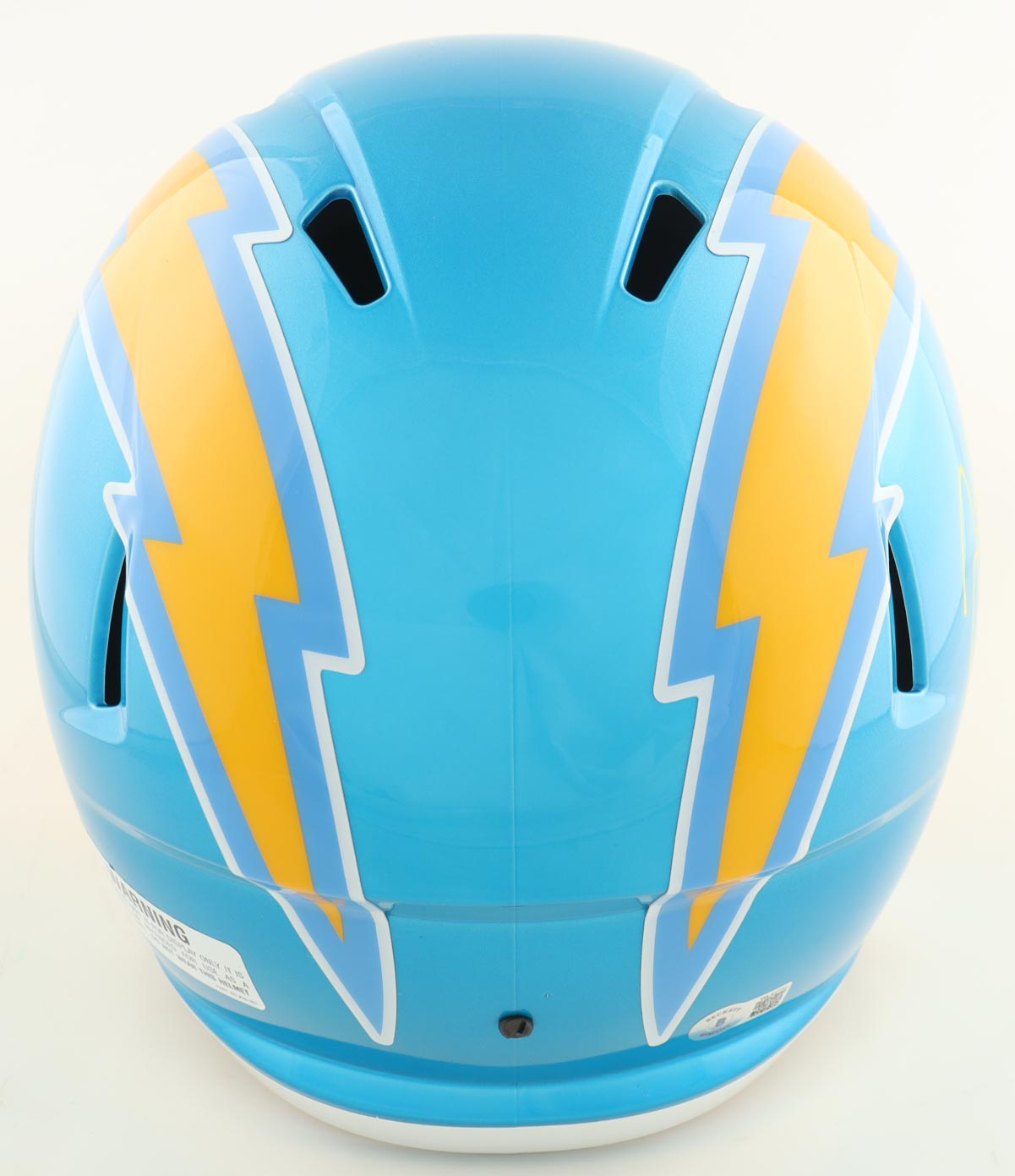 Riddell Los Angeles Chargers Full-Size Flash Alternate replica Speed helmet. Hand-signed and inscribed by Justin Herbert.