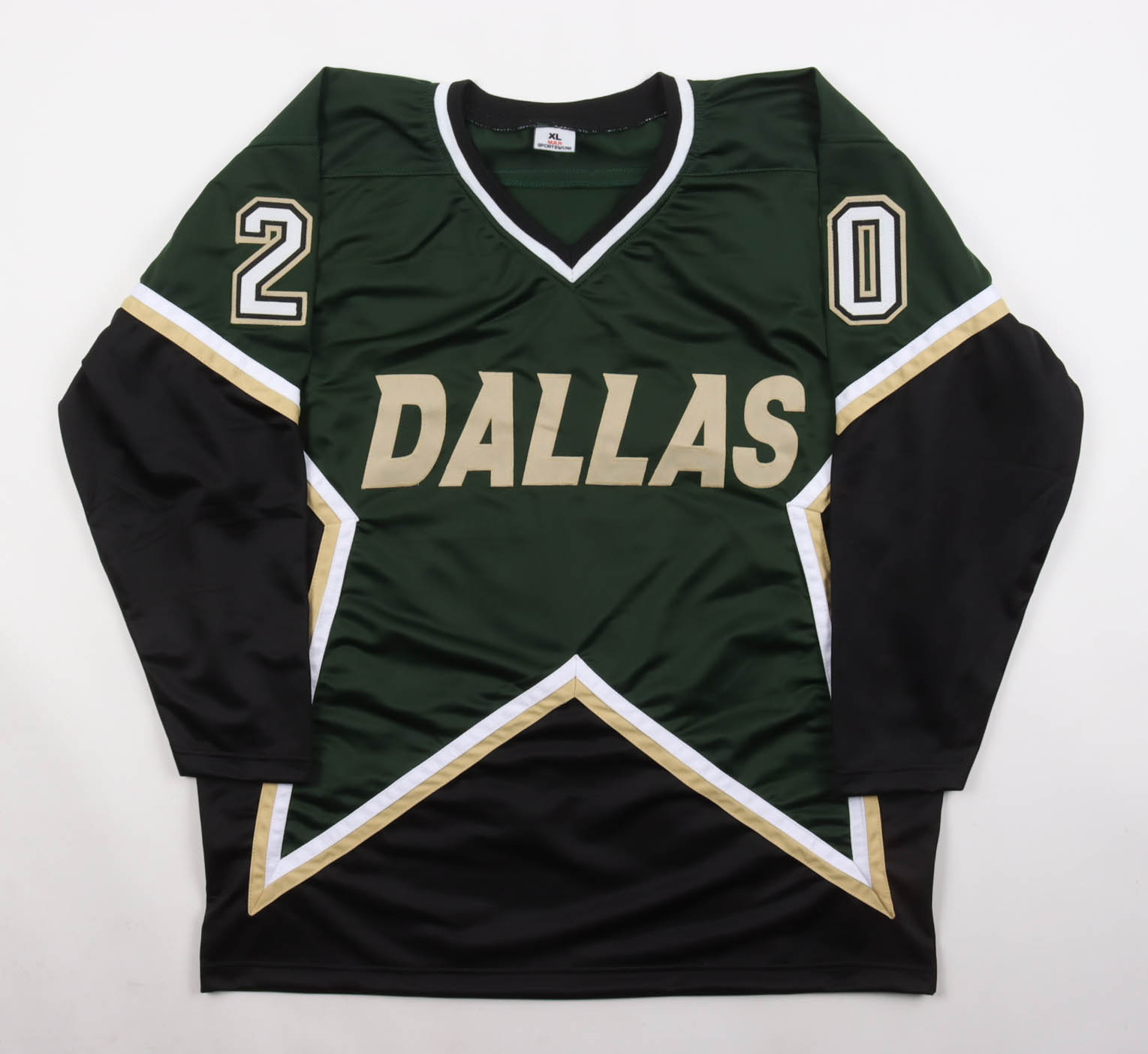 Custom jersey with everything sewn on, size XL. Hand-signed and inscribed by Ed Belfour (HOF).