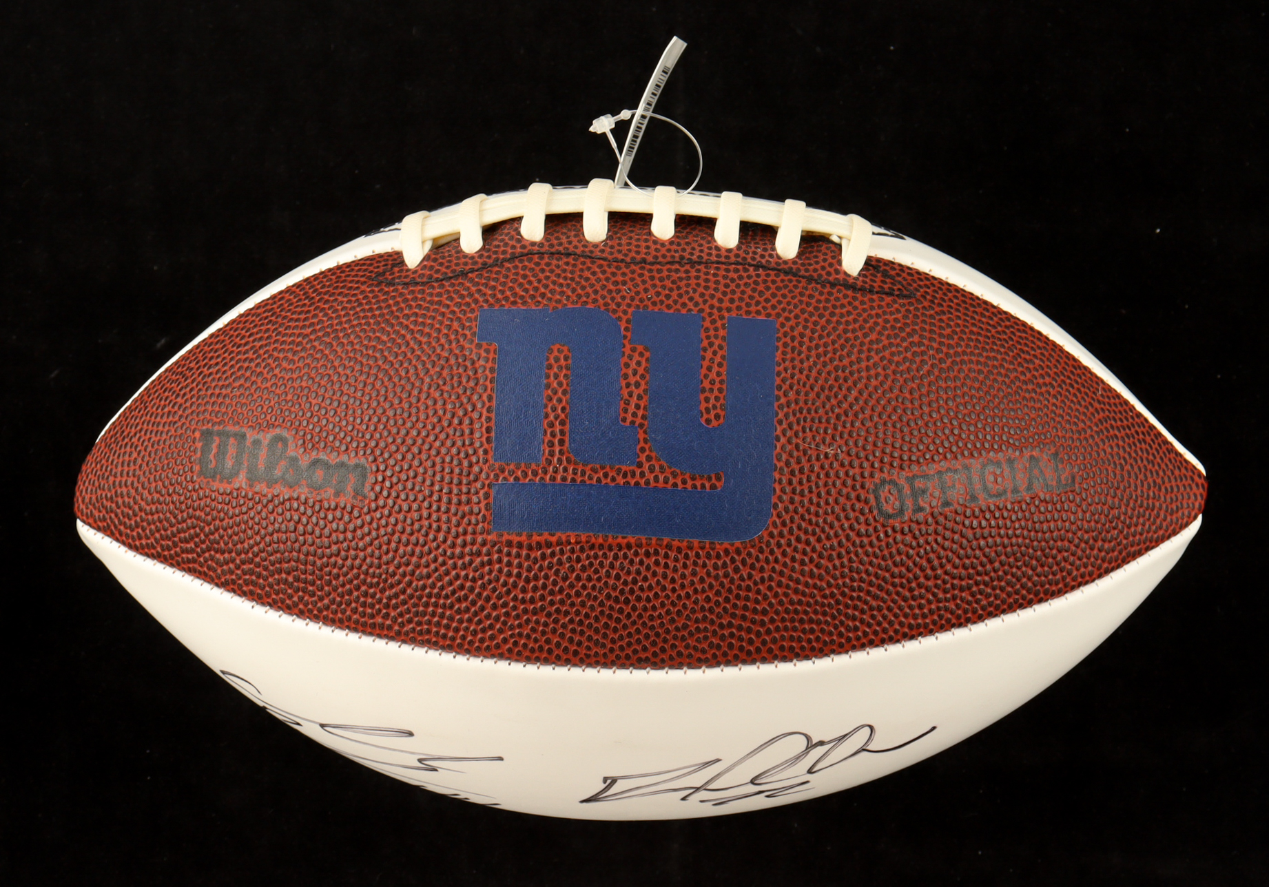 New York Giants logo football. Hand-signed by David Wilson and Ahmad Bradshaw.