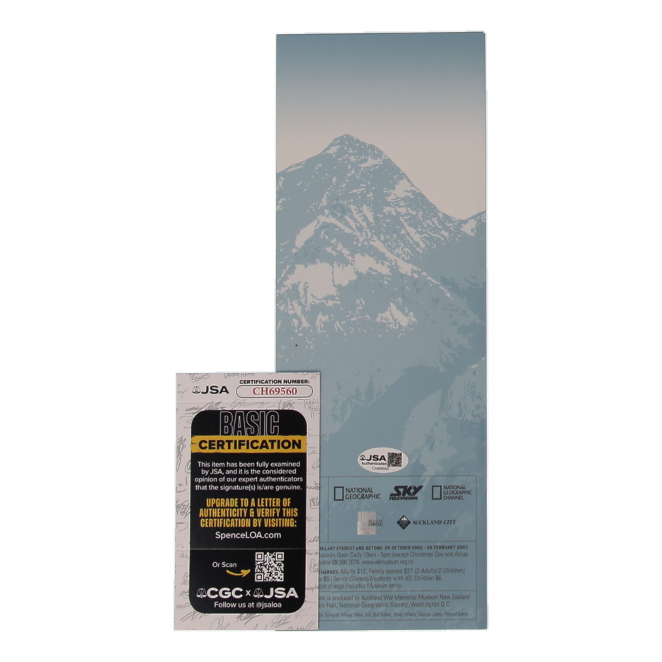 Foldable pamphlet measures approximately 4" x 12" in size and has been hand-signed by Sir Edmund Hillary.