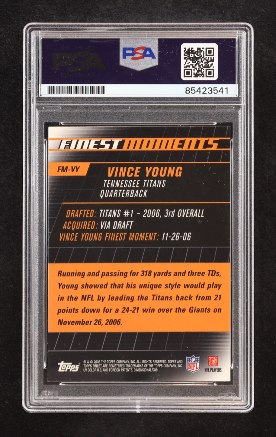 Vince Young Signed 2008 Topps Finest Moments #FM-VY RC (PSA)