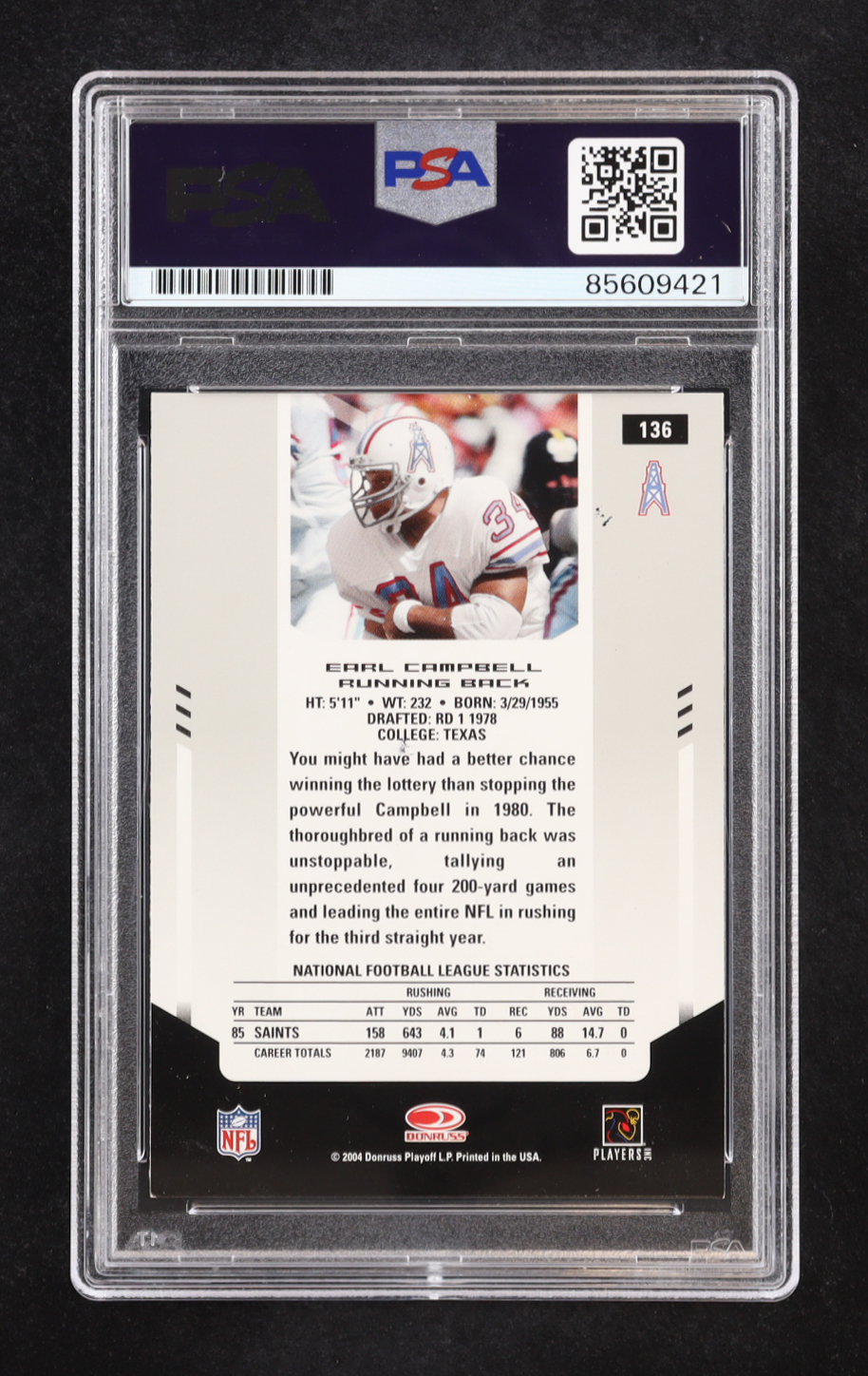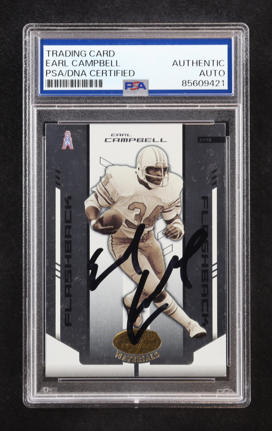 Earl Campbell Signed 2004 Donruss Flashback Certified Materials #136 (PSA)