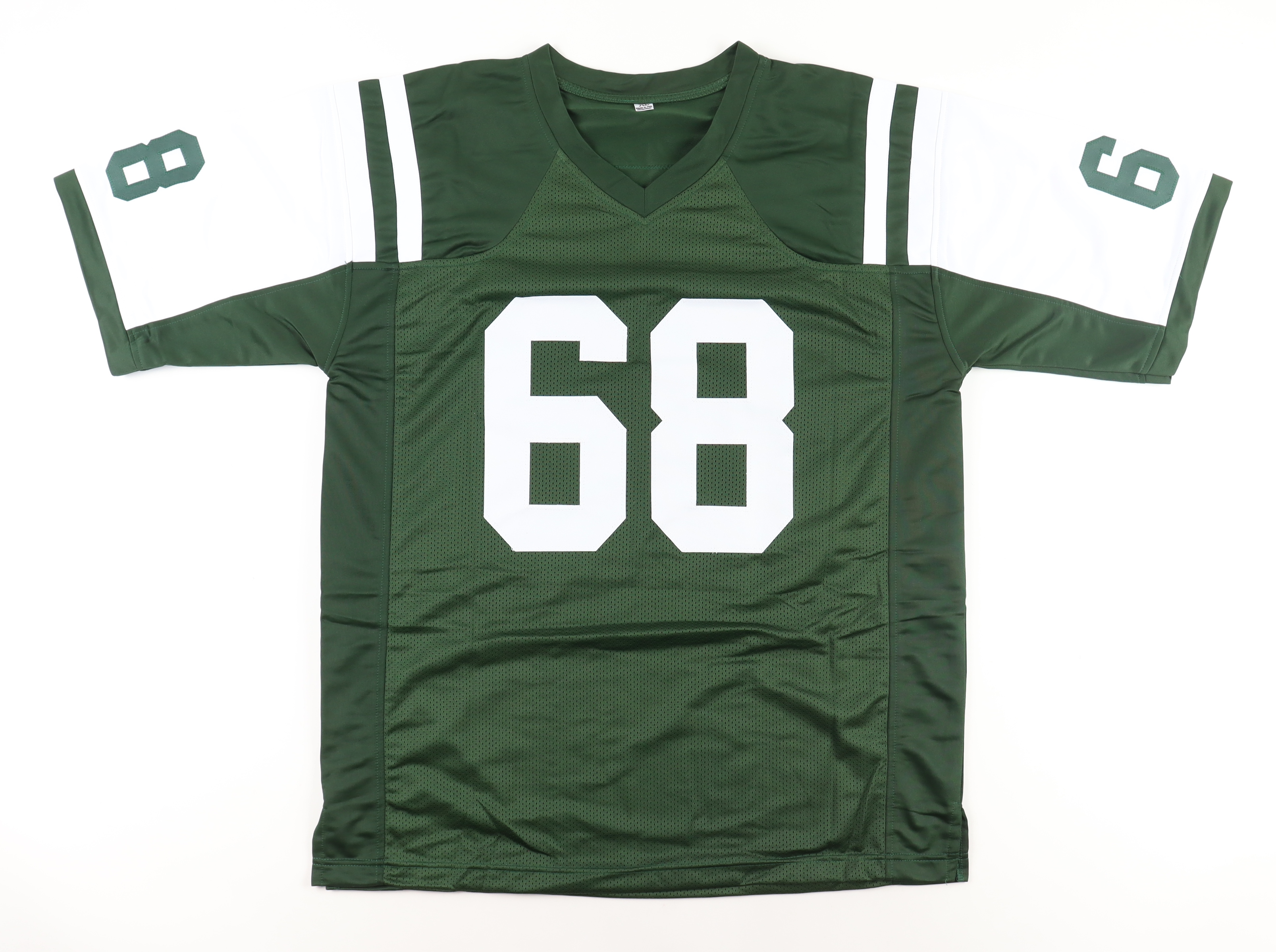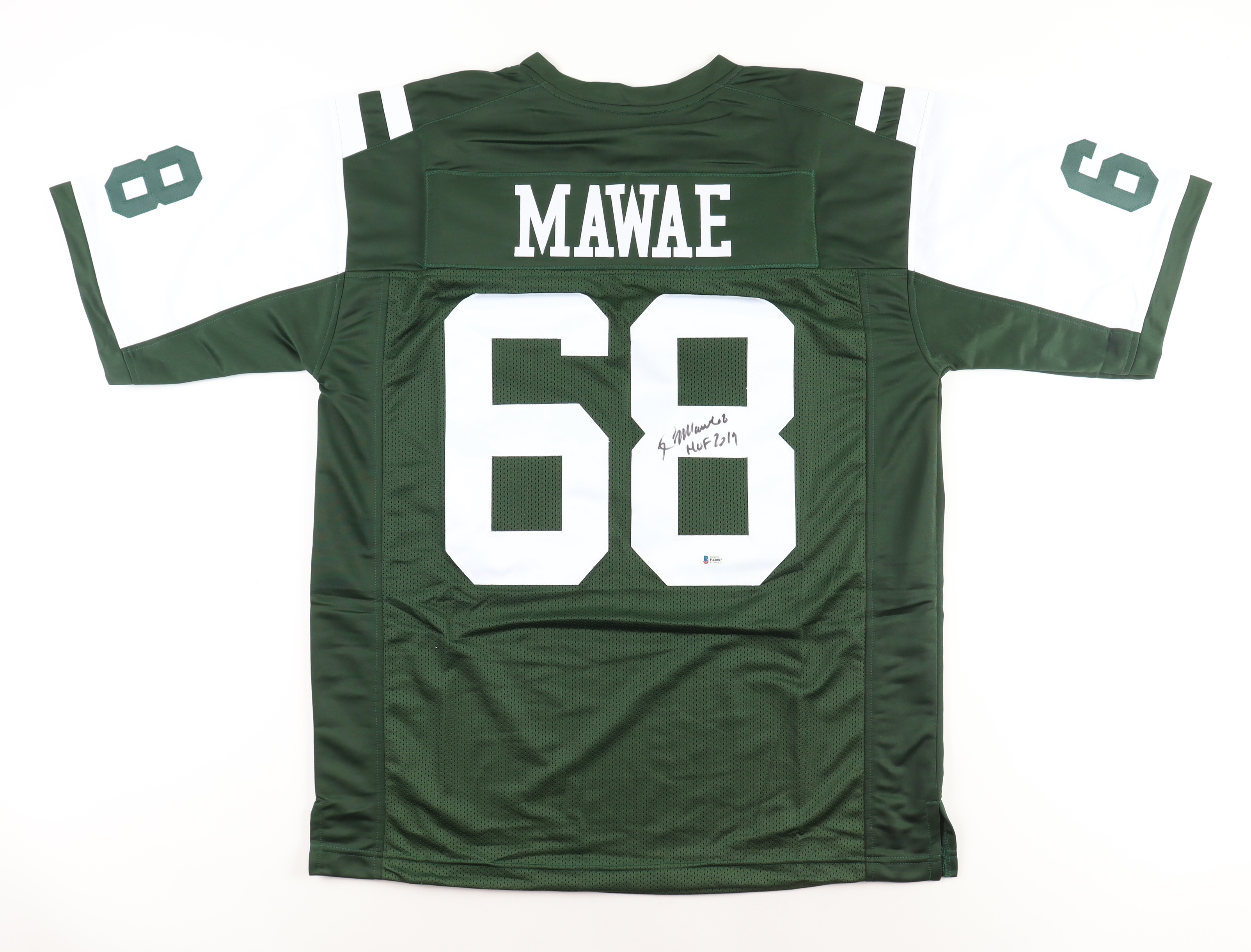 Custom jersey with everything sewn on, size XL. Hand-signed and inscribed by Kevin Mawae.