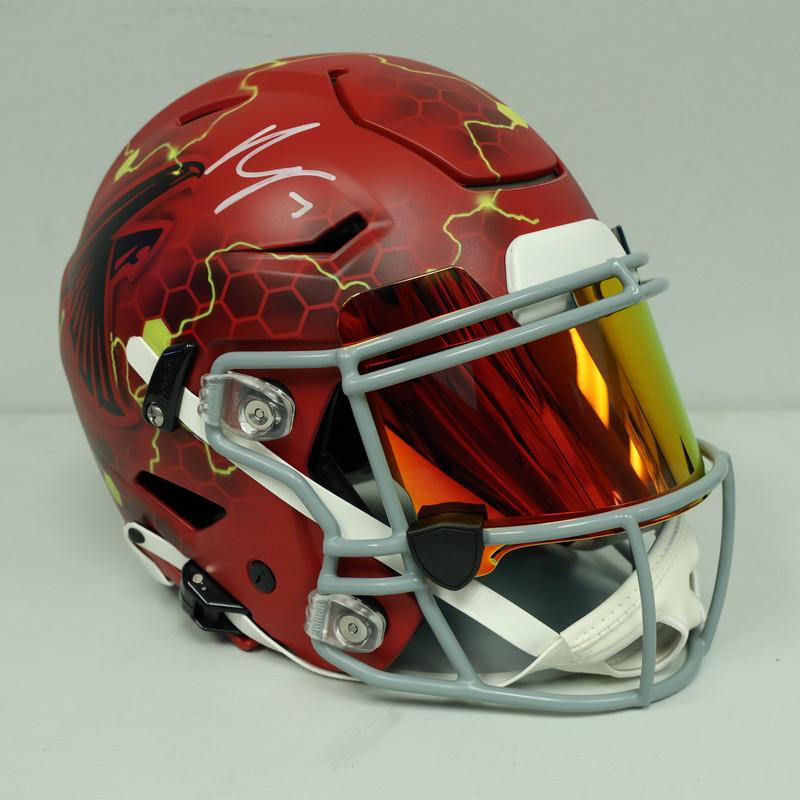 Riddell Atlanta Falcons full-size authentic on-field custom painted speedflex helmet has been hand-signed by Bijan Robinson.