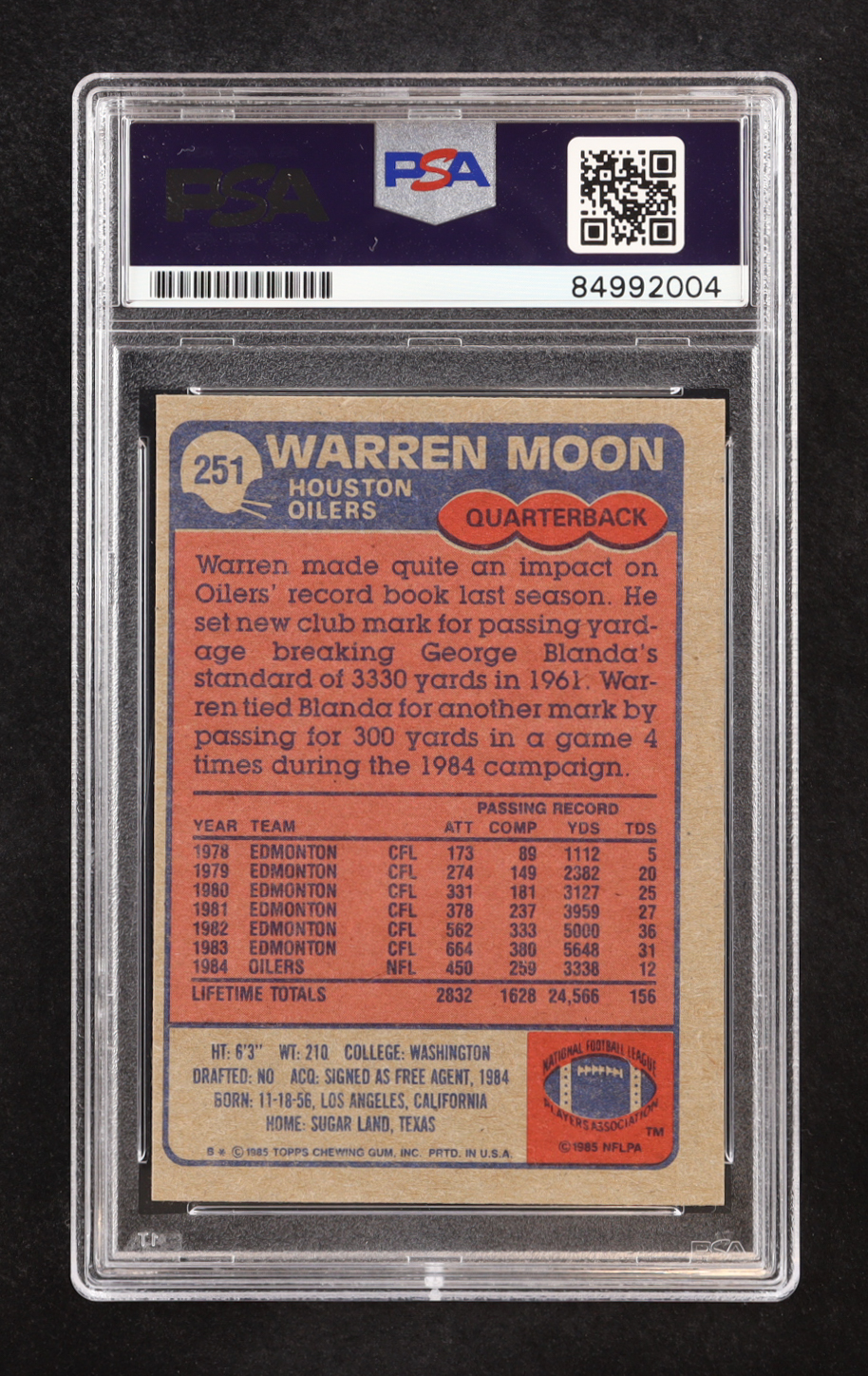 Warren Moon Signed 1985 Inscribed "HOF 06" Topps #251 RC (PSA)