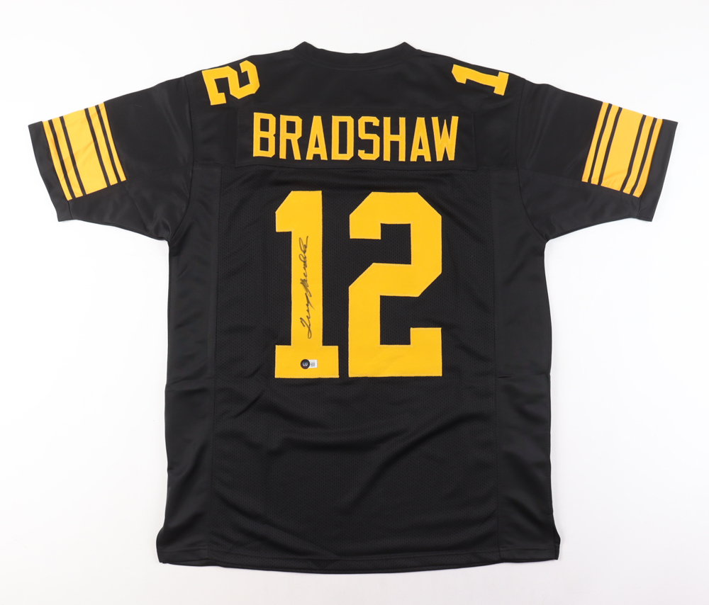 Custom jersey. Everything sewn on, size XL. Hand-signed by Terry Bradshaw (HOF).
