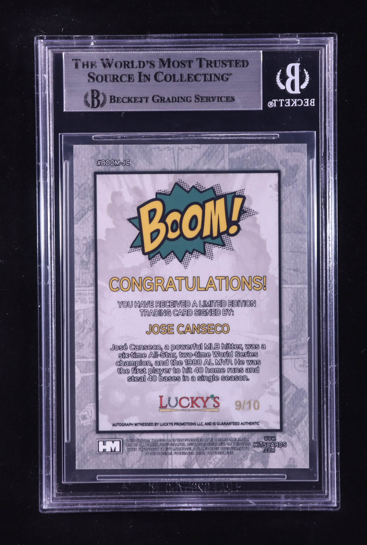 Jose Canseco Signed 2024 Hits Memorabilia Boom Gold #BOOMJC #09/10 (BGS)