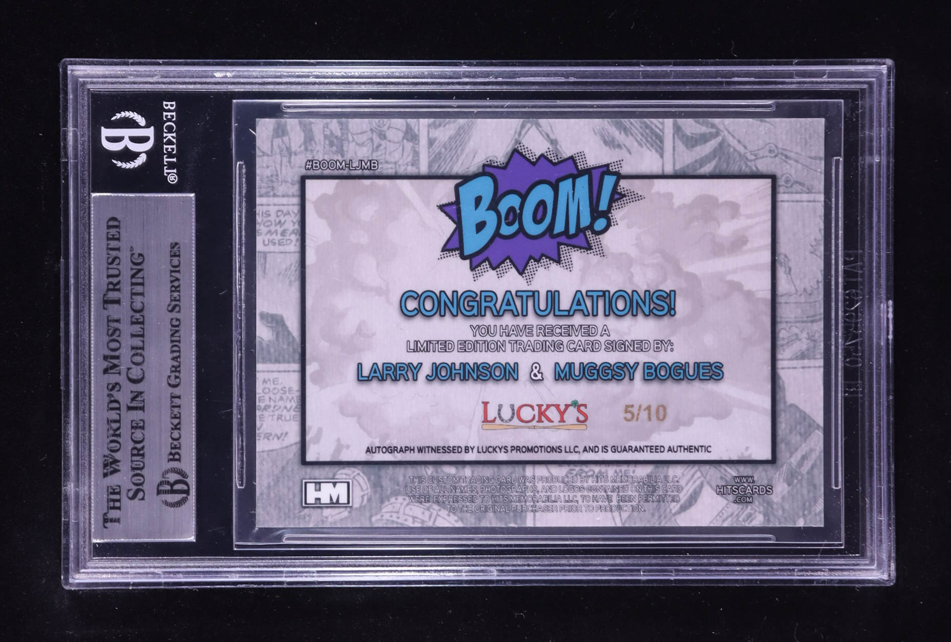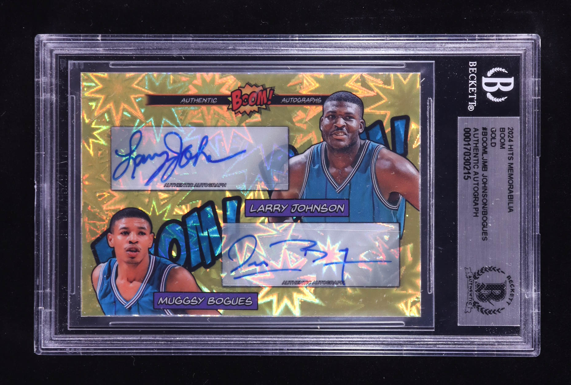 Larry Johnson & Muggsy Bogues Signed 2024 Hits Memorabilia Boom Gold #BOOMLJMB #05/10 (BGS)