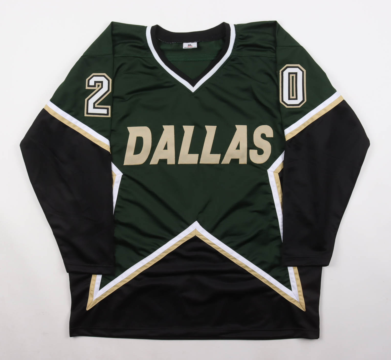 Custom jersey with everything sewn on, size XL. Hand-signed and inscribed by Ed Belfour (HOF).
