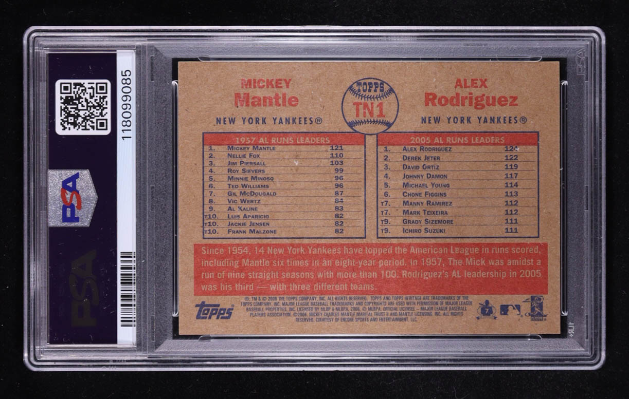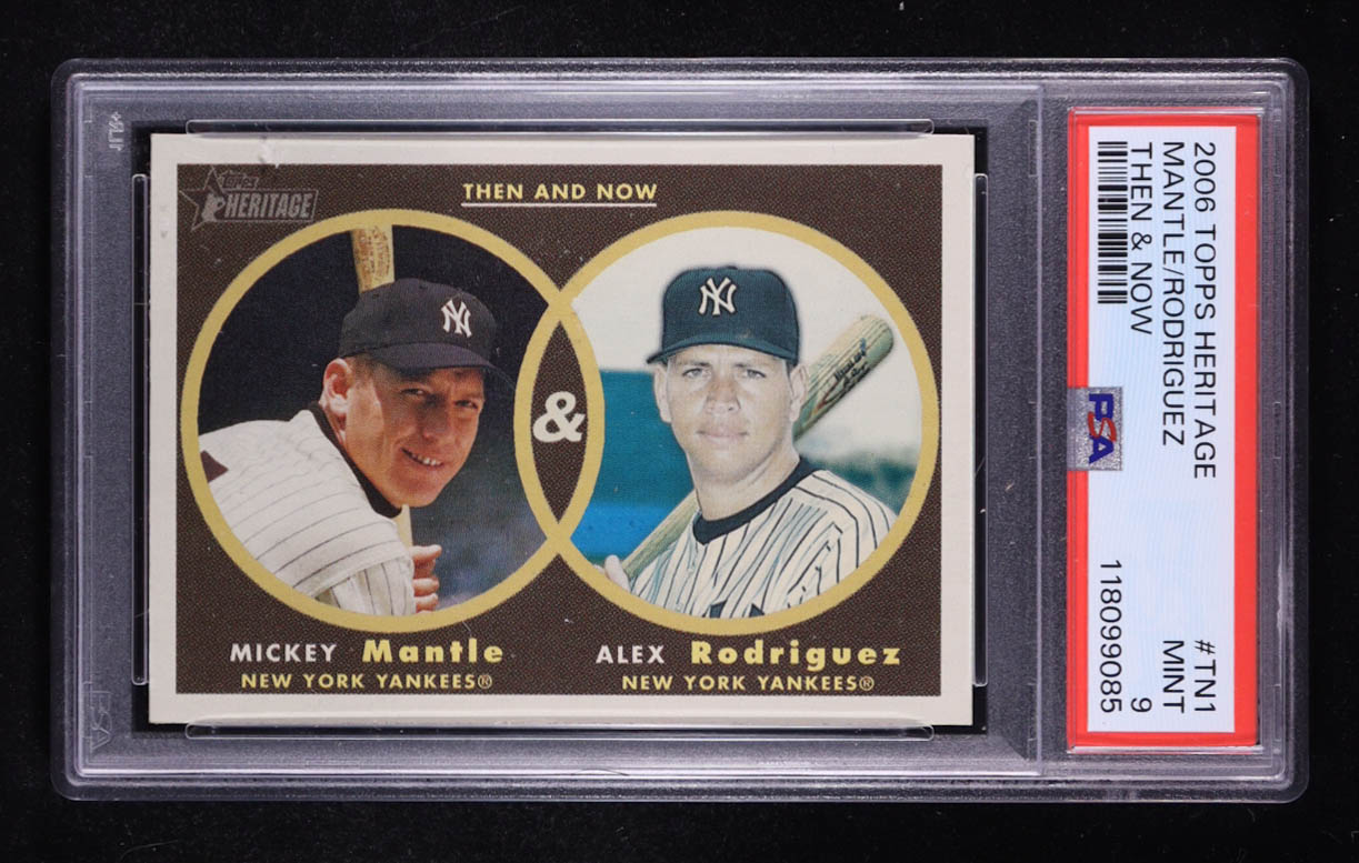 Mickey Mantle / Alex Rodriguez 2006 Topps Heritage Then and Now #TN1 (PSA 9)