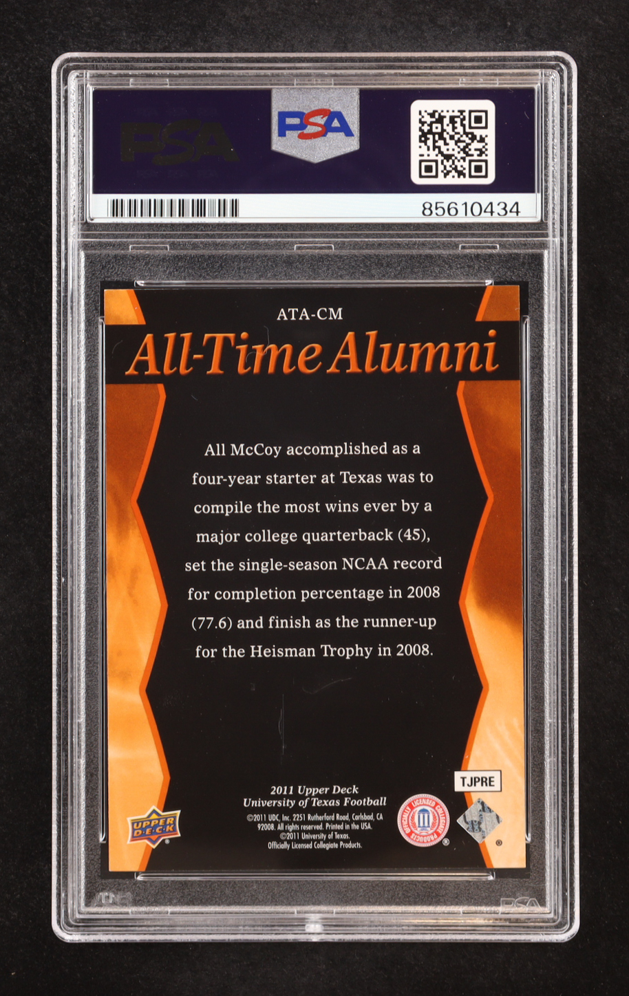Colt McCoy Signed 2011 Upper Deck All-Time Alumni #ATA-CM (PSA)