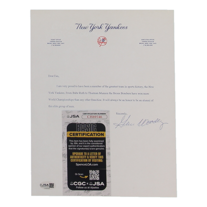 Letter has been hand-signed by Gene Woodling (D. 2001, New York Yankees).