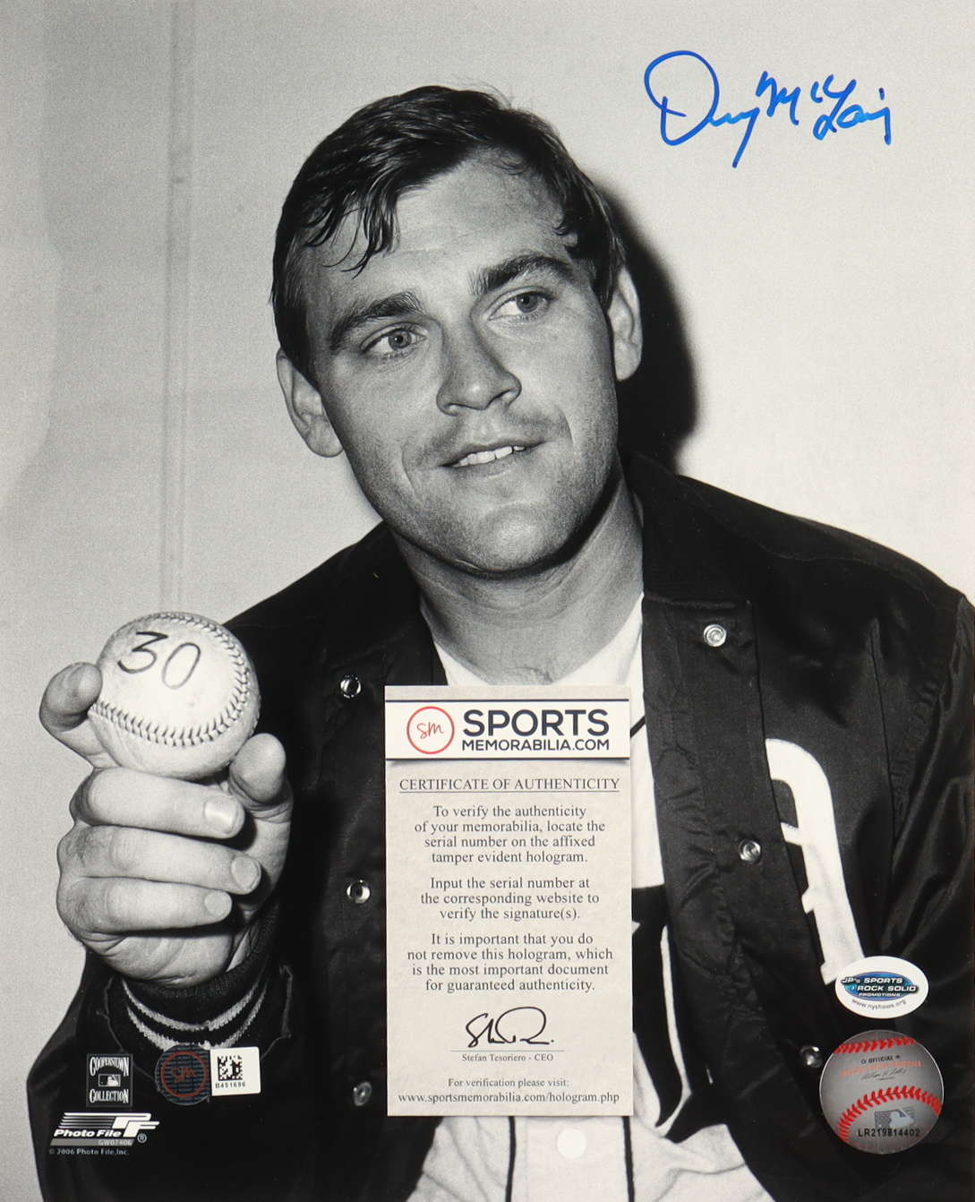 Photo measures 8" x 10" in size and has been hand-signed by Denny McLain (Detroit Tigers).