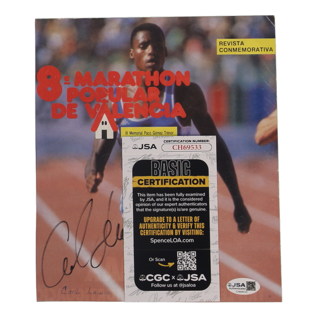 Cut measures approximately 7.5" x 8.5" in size and has been hand-signed by Carl Lewis.
