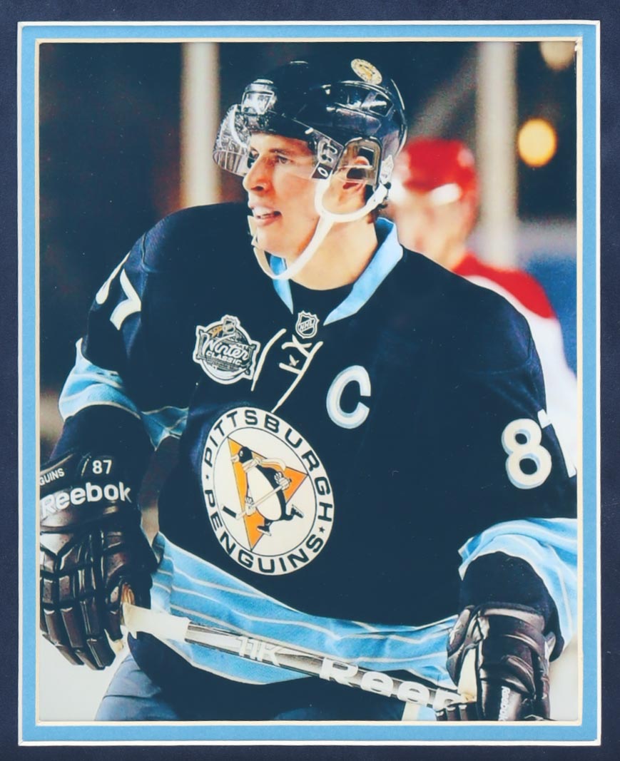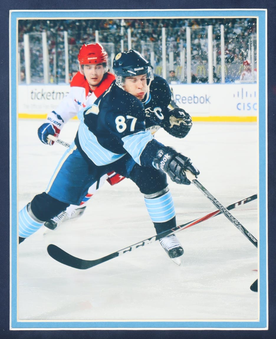 Custom shadowbox measures 32" x 39" in size and features a 2011 Winter Classic jersey that has been hand-signed by Sidney Crosby (Pittsburgh Penguins, HOF).
