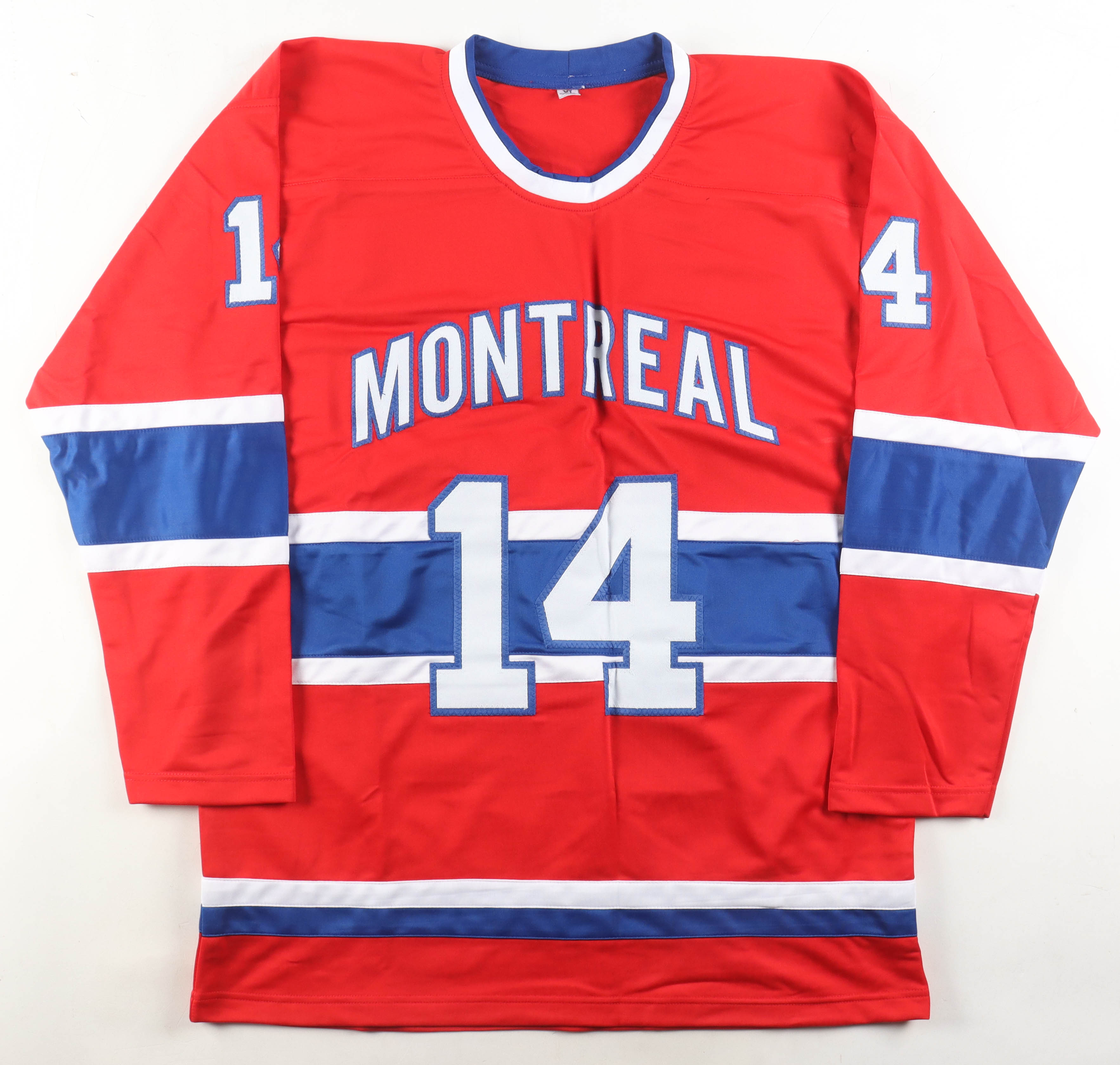 Custom jersey with everything sewn on, size XL. Hand-signed by Nick Suzuki.
