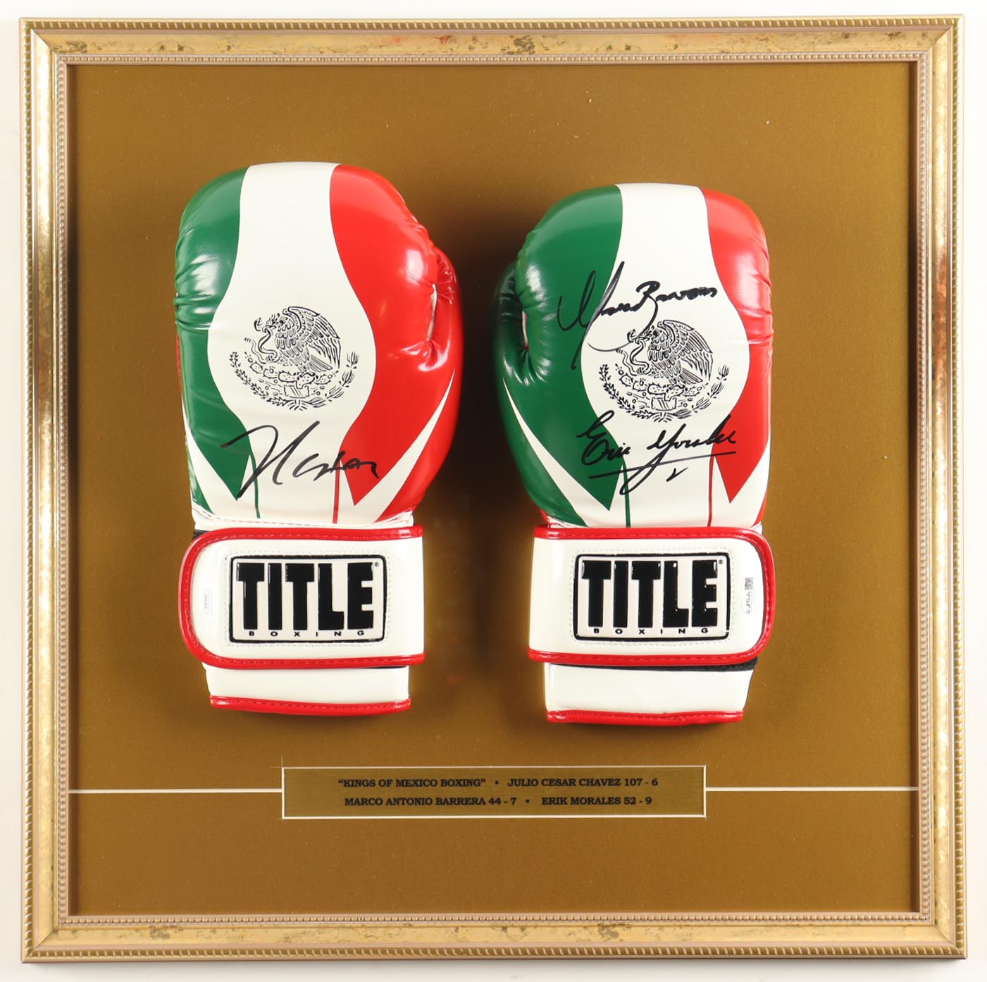 Julio Cesar Chavez, Marco Antonio Barrera & Erik Morales Signed Custom Framed Set of (2) Mexico Professional Boxing Gloves (JSA)