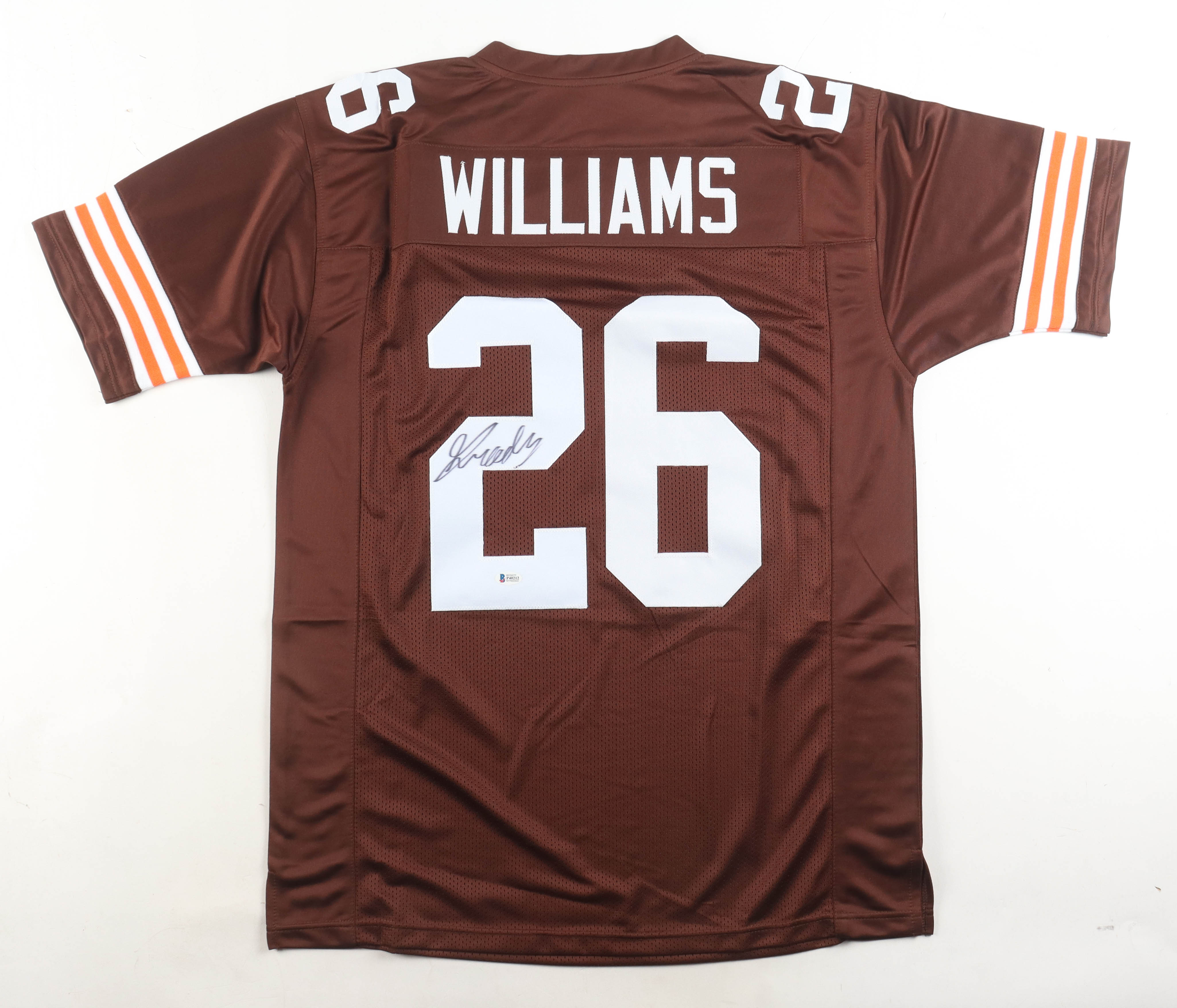 Custom jersey with everything sewn on, size XL. Hand-signed by Greedy Williams (Cleveland Browns).