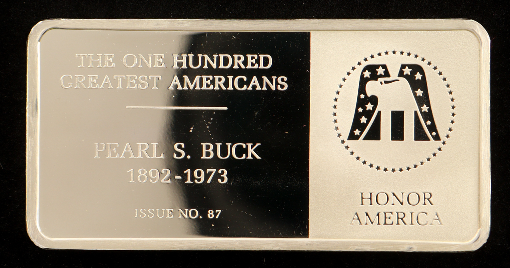 Franklin Mint One Hundred Greatest Americans: Pearl S. Buck - 500 Grains (1.14 Troy Ounces) Sterling Silver Bullion Bar