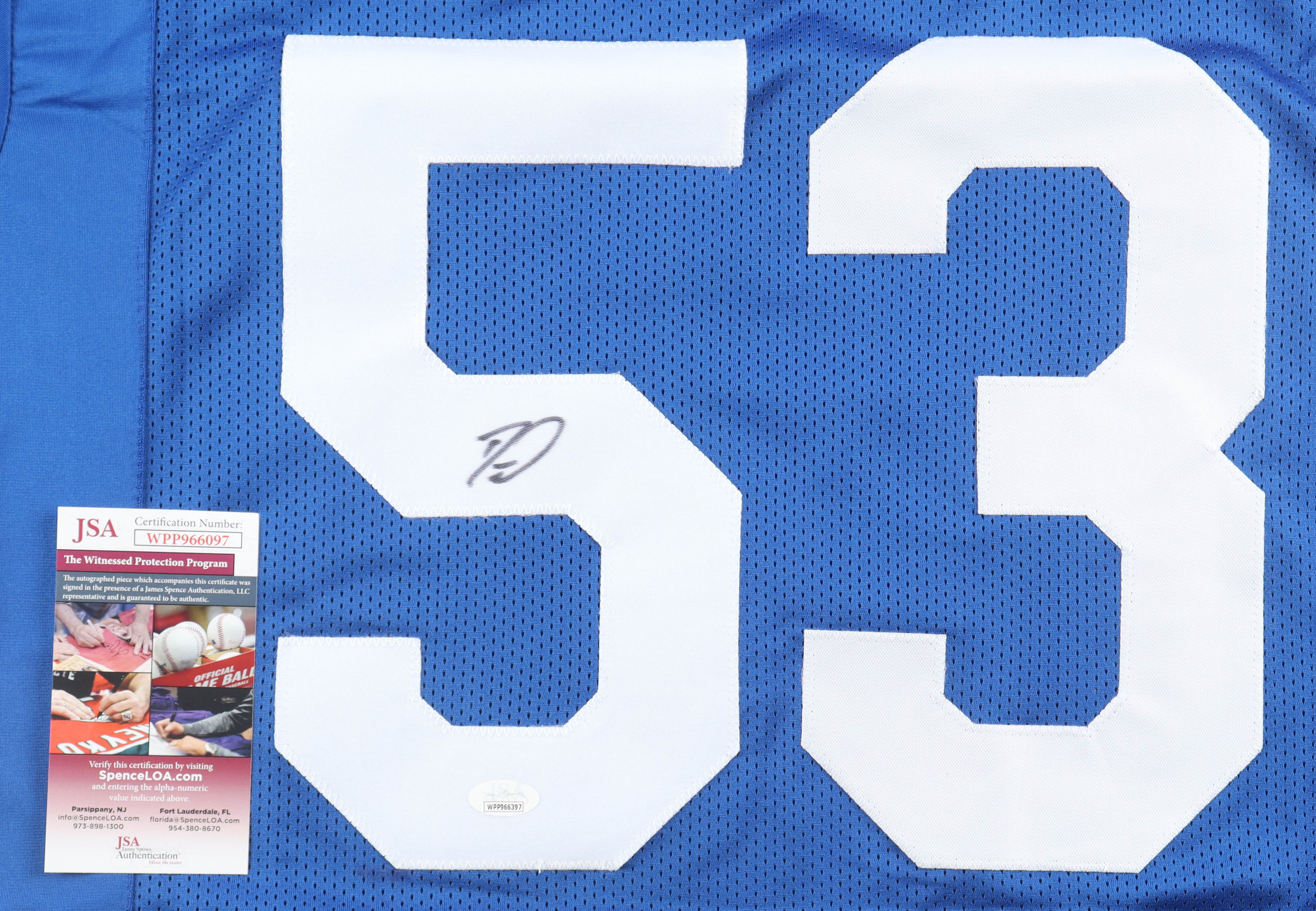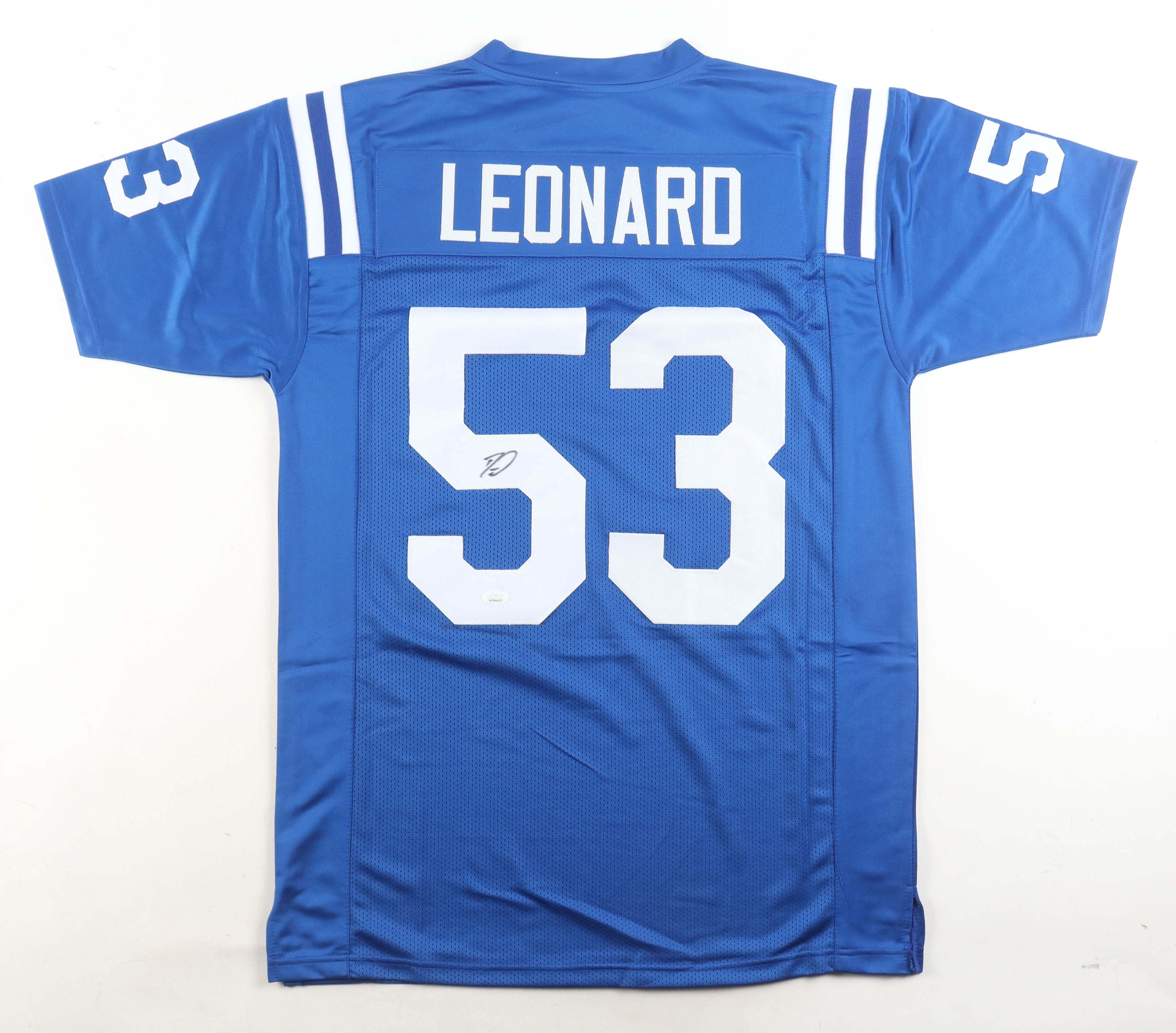 Custom jersey with everything sewn on, size XL. Hand-signed by Darius Leonard (Indianapolis Colts).