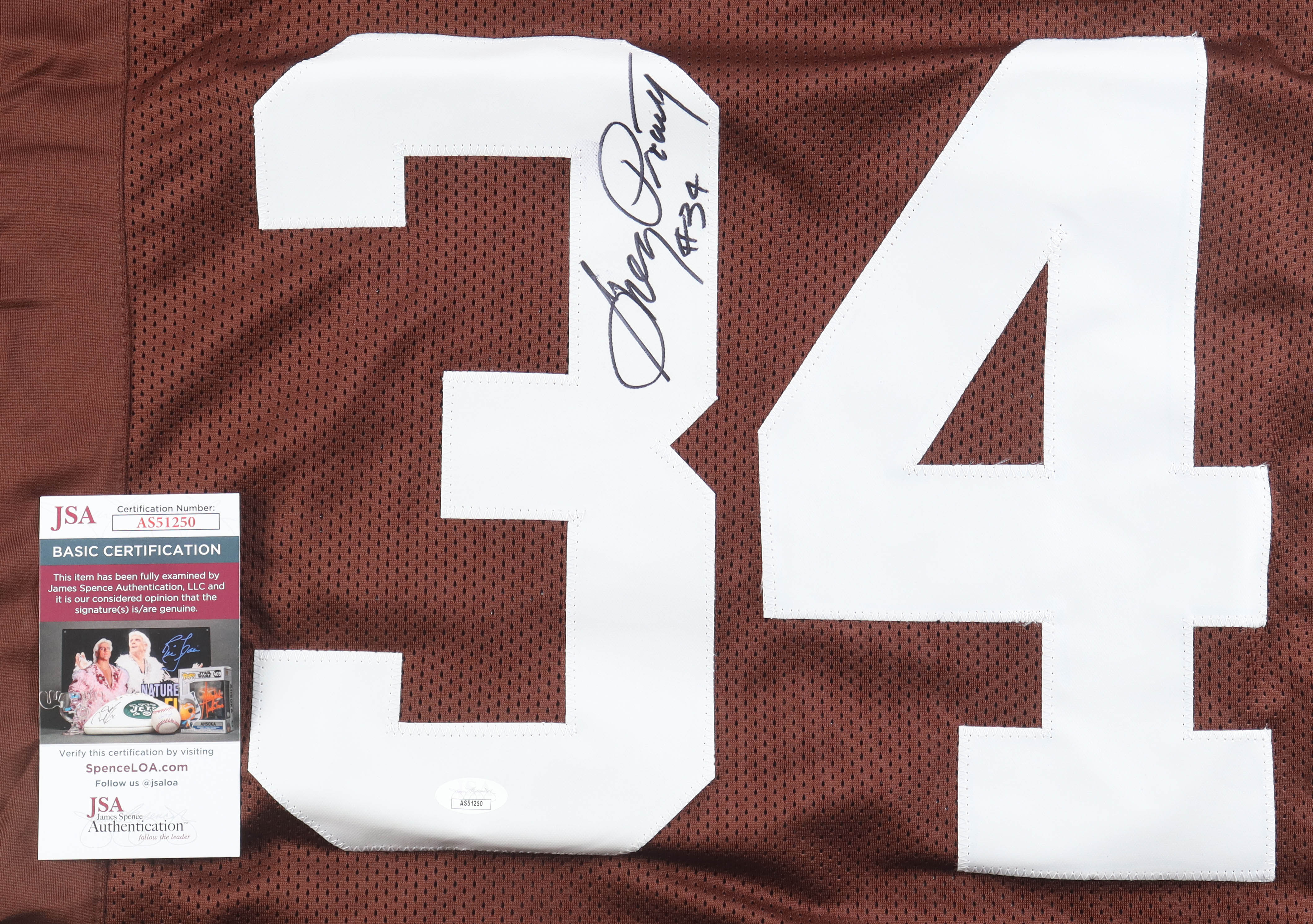 Custom jersey with everything sewn on, size XL. Hand-signed by Greg Pruitt.