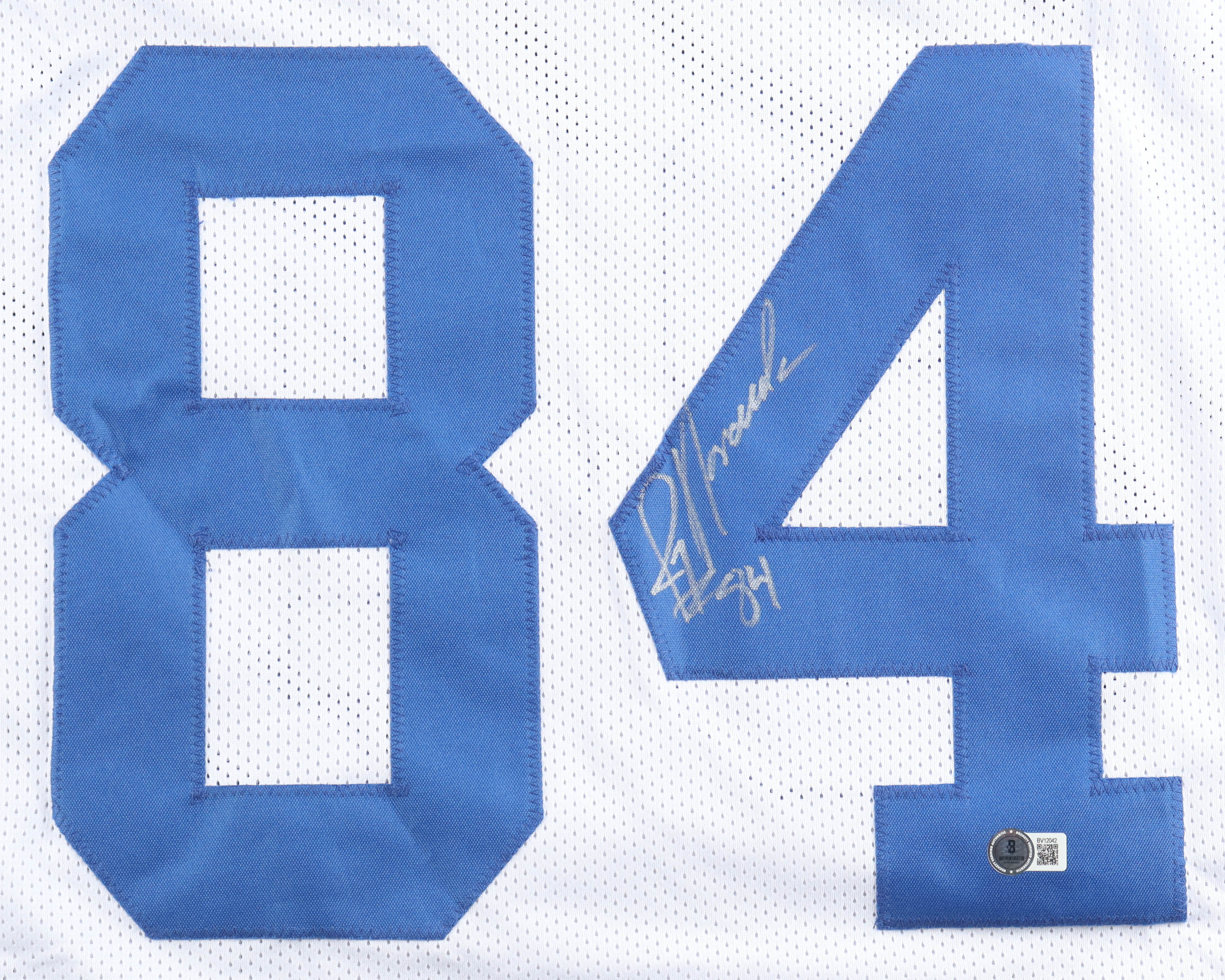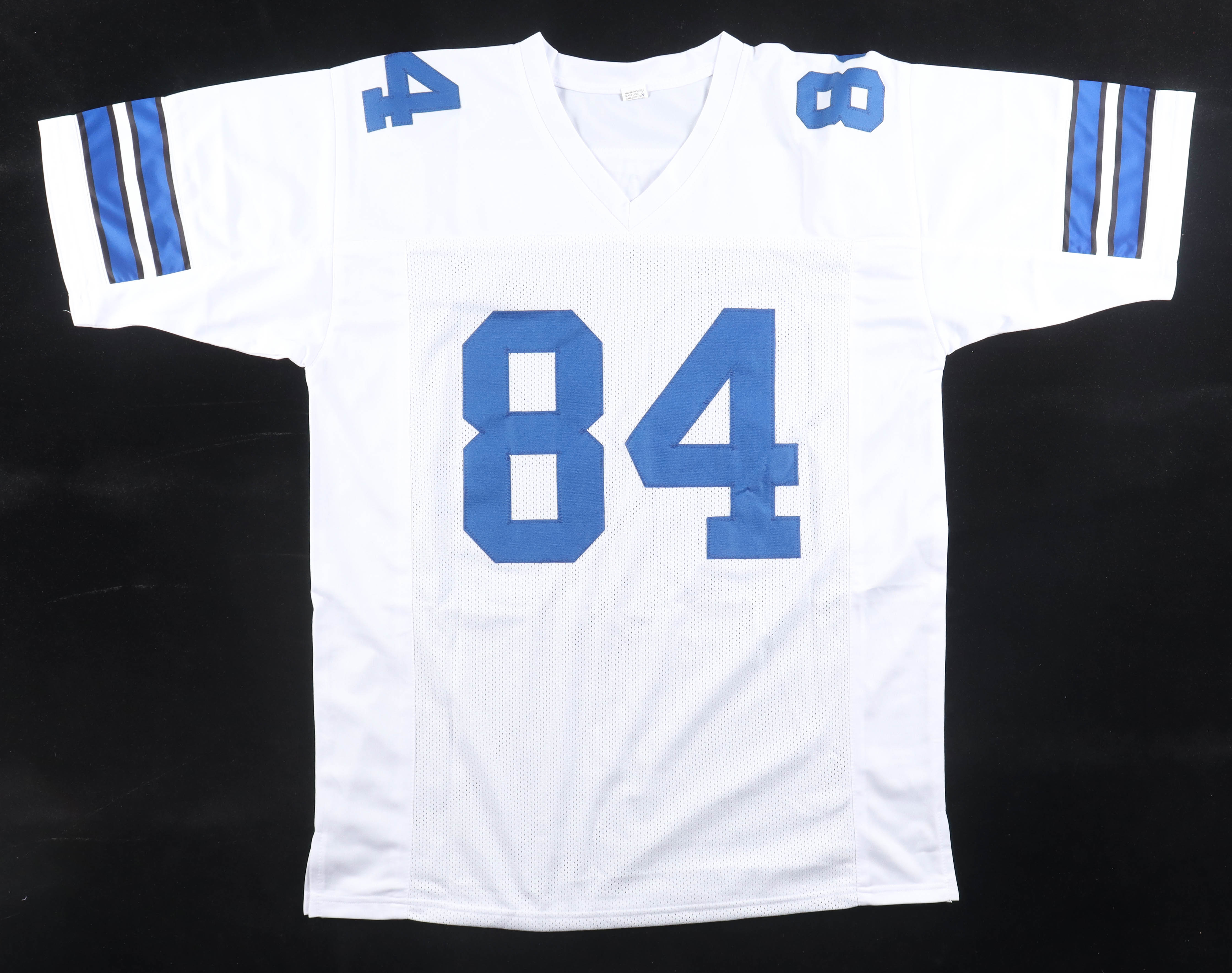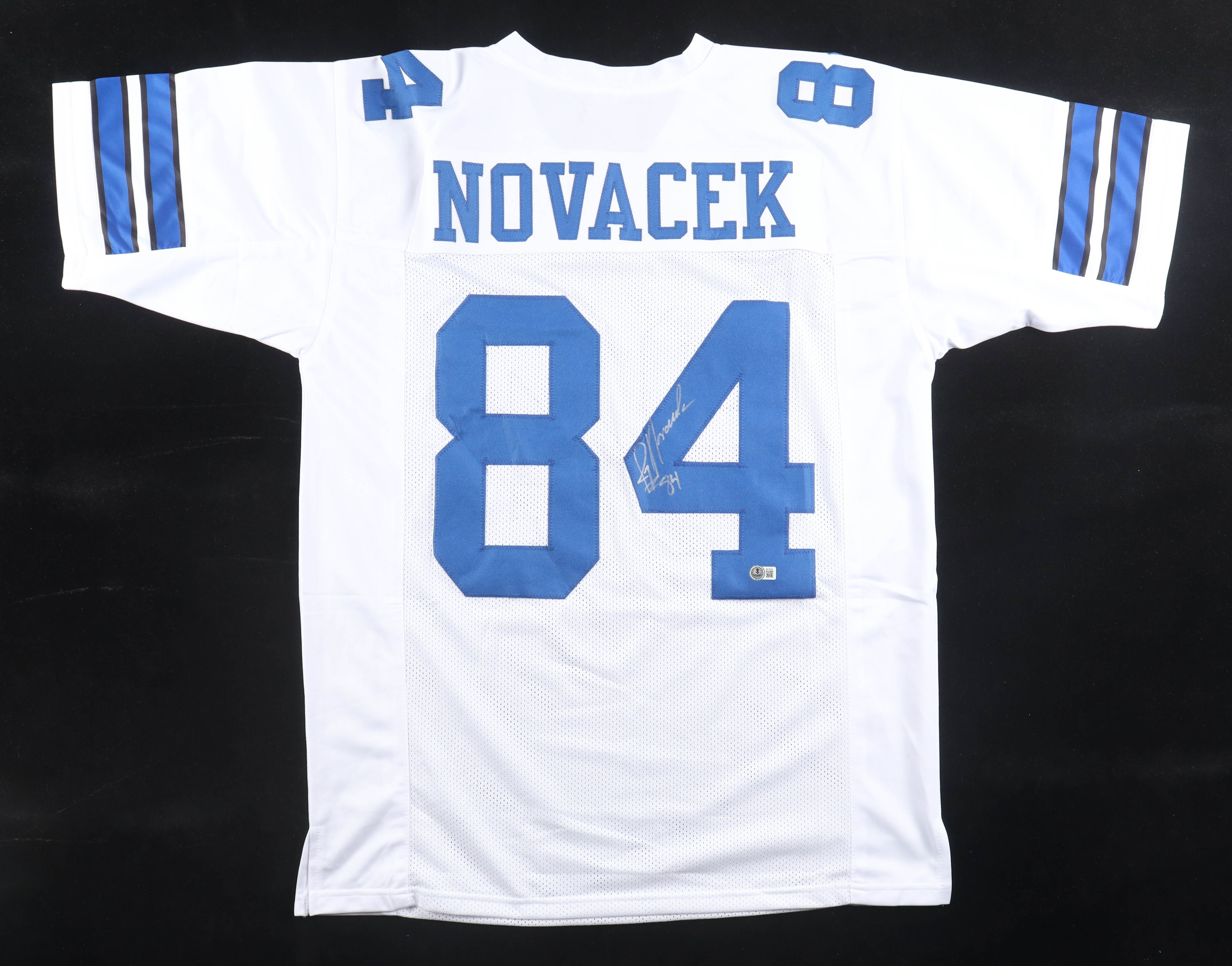 Custom jersey with everything sewn on, size XL. Hand-signed by Jay Novacek.