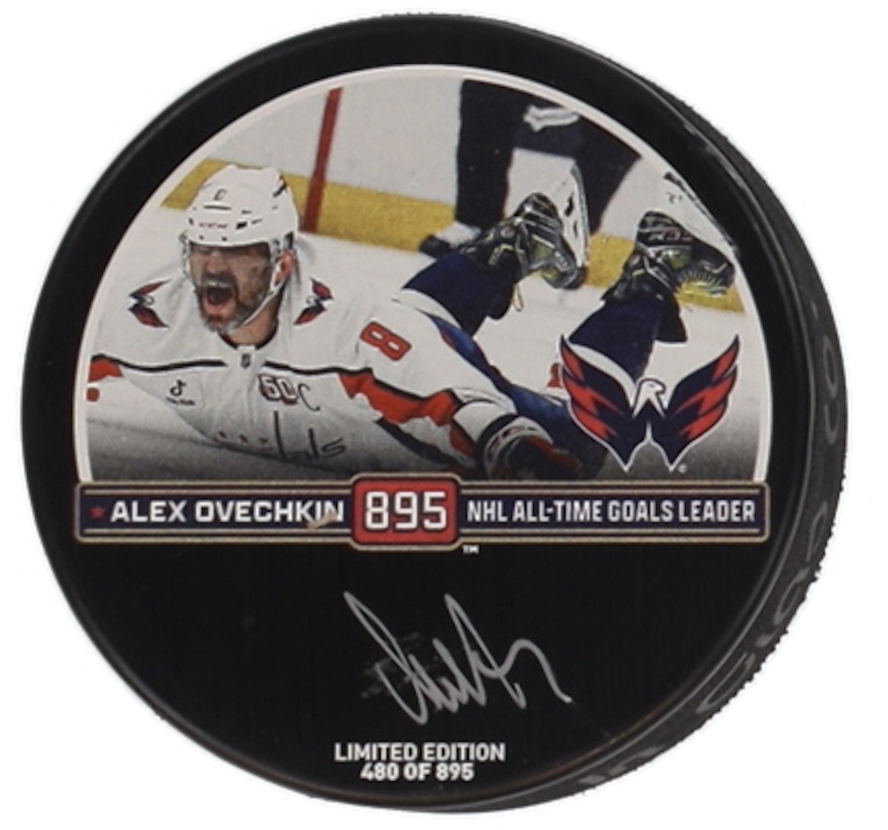 Alexander Ovechkin Signed Capitals Logo All-Time Goals Leader Commemorative Hockey Puck (Fanatics)