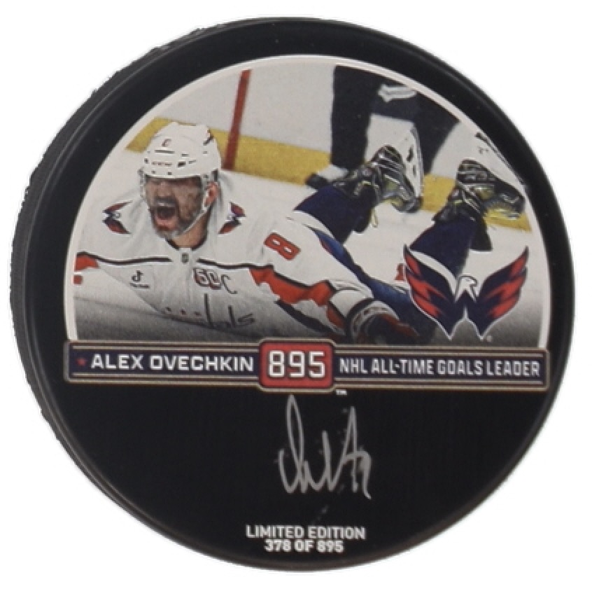 Alexander Ovechkin Signed Capitals Logo All-Time Goals Leader Commemorative Hockey Puck (Fanatics)