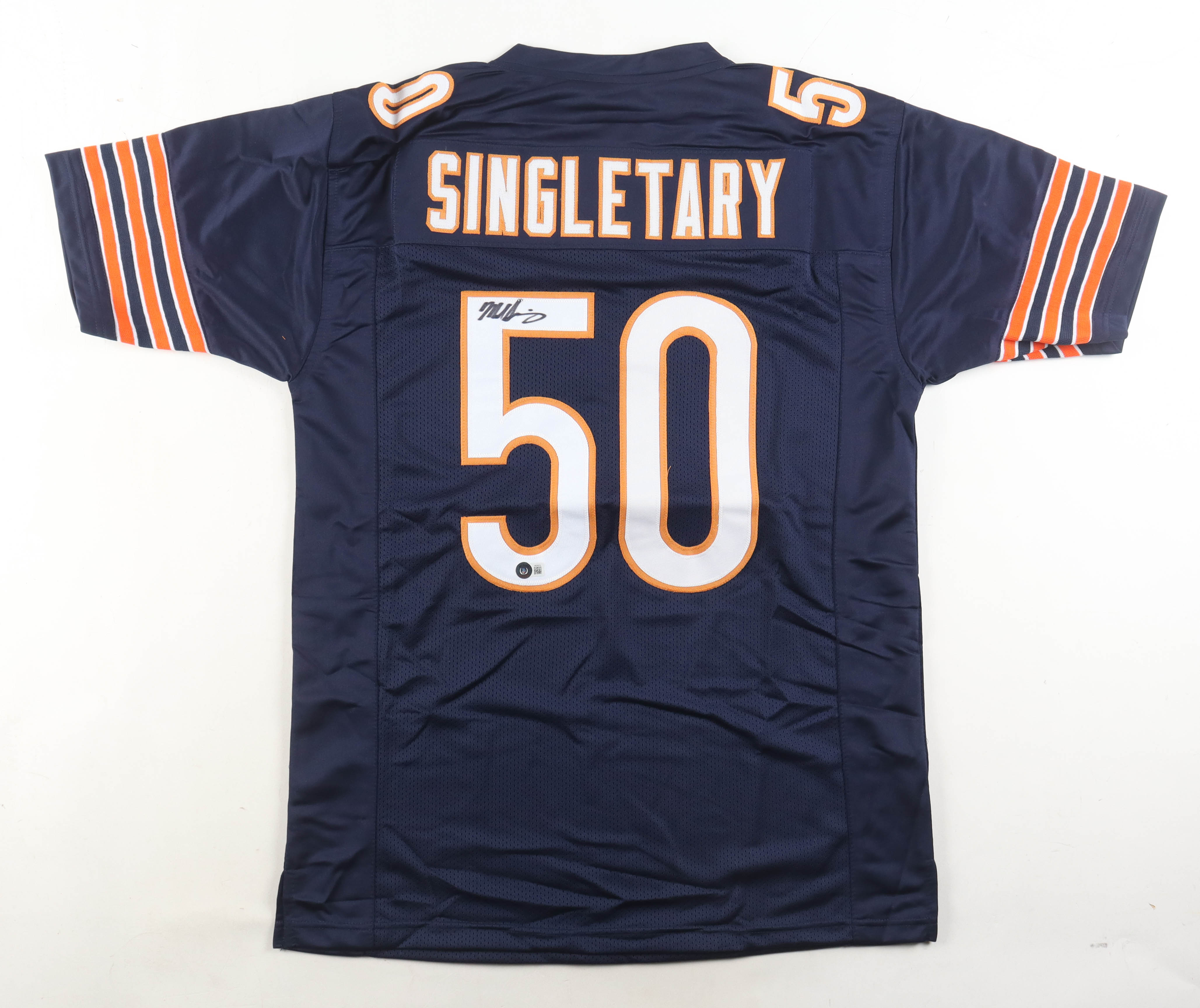 Custom jersey with everything sewn on, size XL. Hand-signed by Mike Singletary (Chicago Bears, HOF).