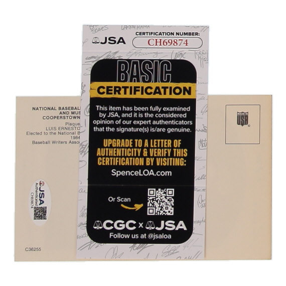 Luis Aparicio Signed Hall of Fame Plaque Postcard (JSA)