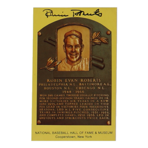 Hall of Fame Plaque Postcard has been hand-signed by Robin Roberts (D. 2010, Philadelphia Phillies, HOF).