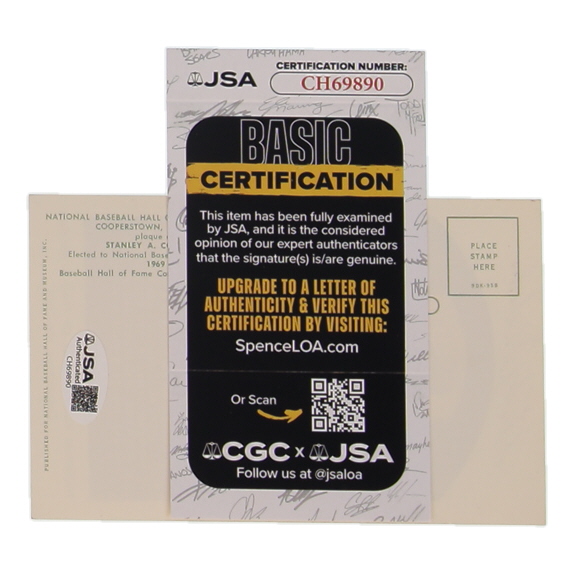 Stan Coveleski Signed Hall of Fame Plaque Postcard (JSA)