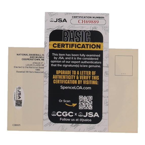 Lou Brock Signed Hall of Fame Plaque Postcard (JSA)