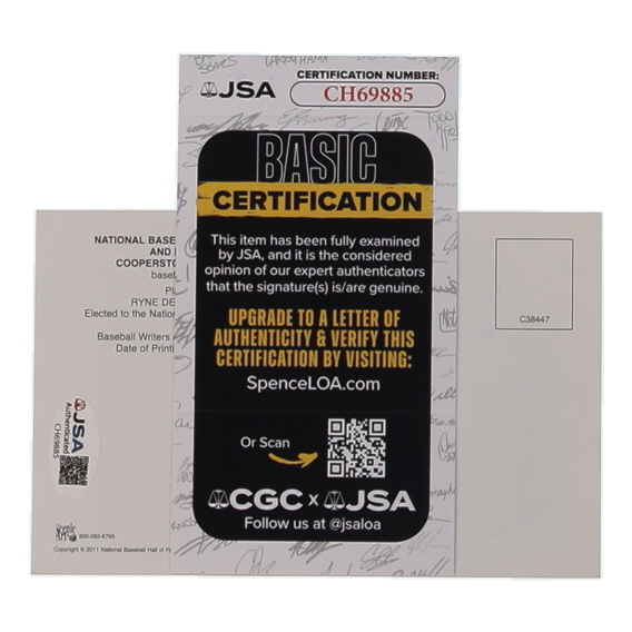 Ryne Sandberg Signed Hall of Fame Plaque Postcard Inscribed "HOF '05" (JSA)