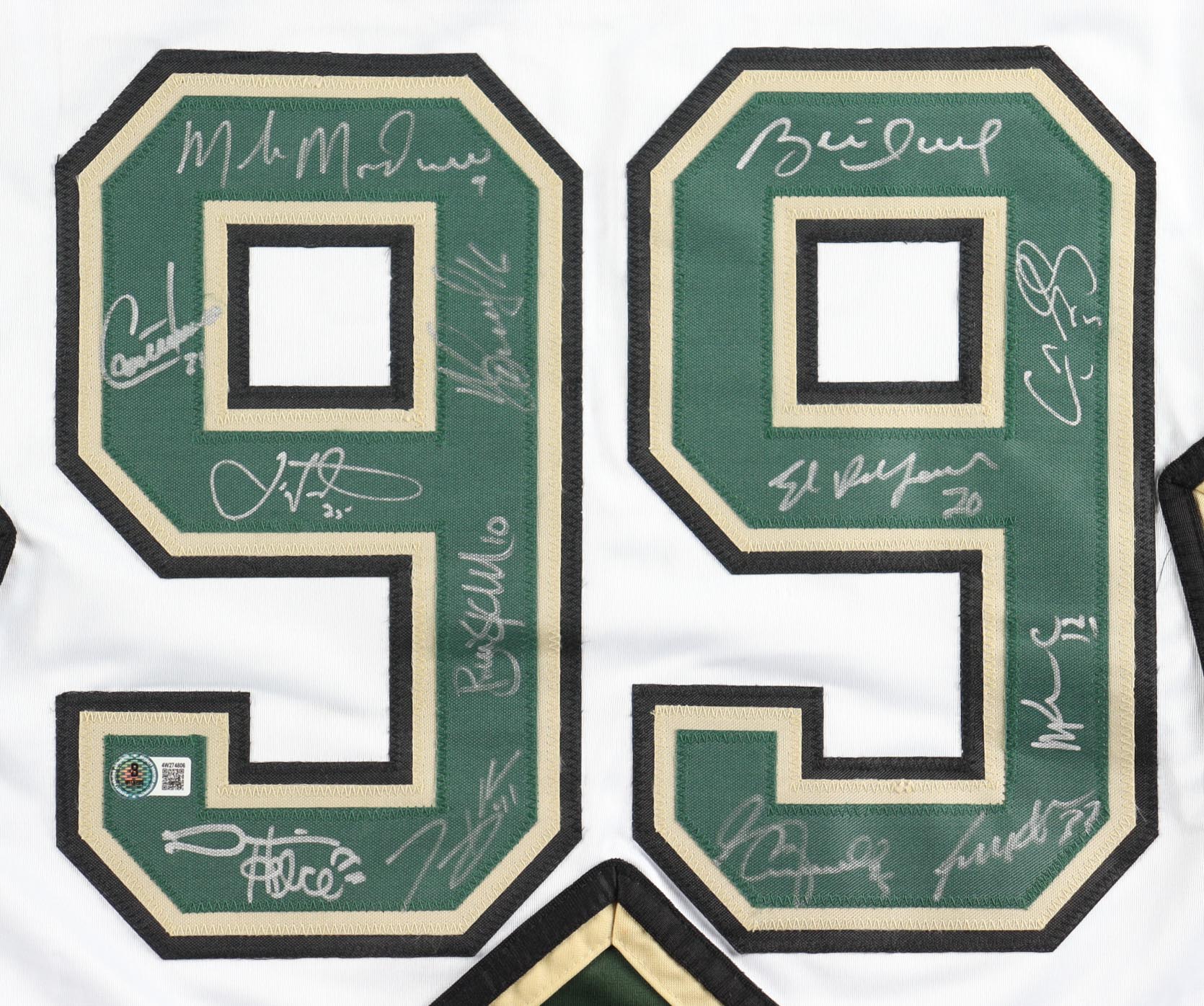 Custom jersey with everything sewn on, size XL. Hand-signed by (13) including Mike Modano (HOF), Brett Hull (HOF), Ed Belfour (HOF), Guy Carbonneau (HOF), Brian Skrudland, Derian Hatcher, Joe Nieuwendyk (HOF), Sergei Zubov (HOF), Craig Ludwig, Benoit Hogue, Tony Hrkac, Grant Marshall and Mike Keane.