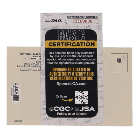 Enos Slaughter Signed Hall of Fame Plaque Postcard (JSA)