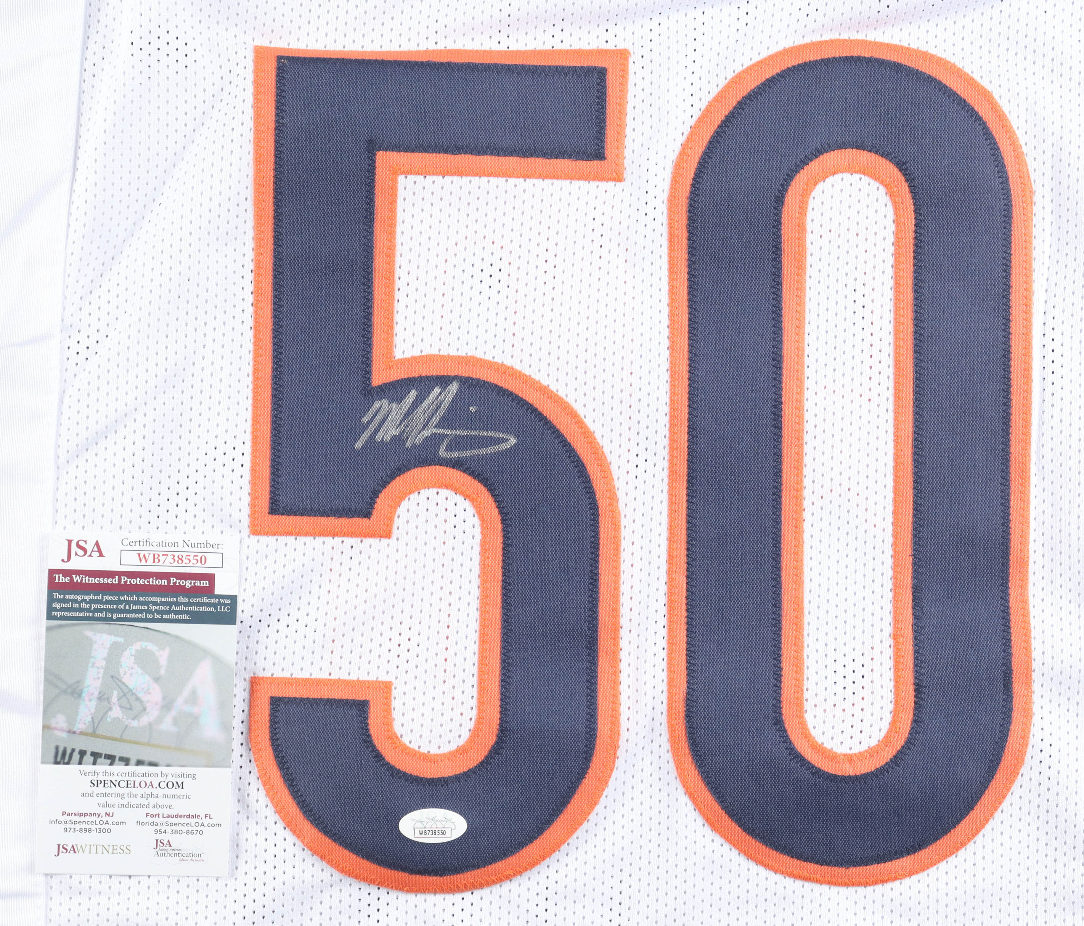 Custom jersey with everything sewn on, size XL. Hand-signed by Mike Singletary (Chicago Bears, HOF).