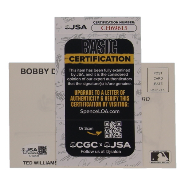 Bobby Doerr Signed 1989 Postcard (JSA)