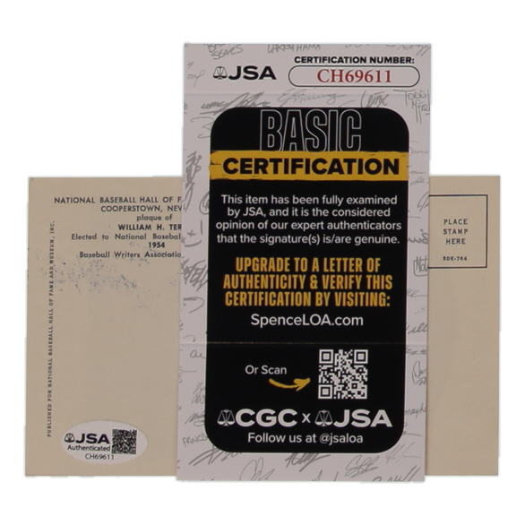 William "Bill" Terry Signed Baseball Hall of Fame Plaque Postcard (PSA)