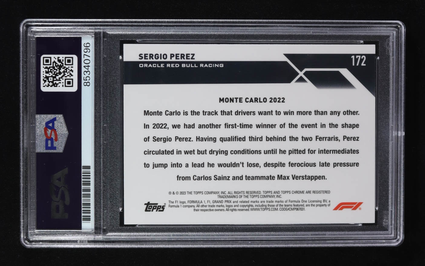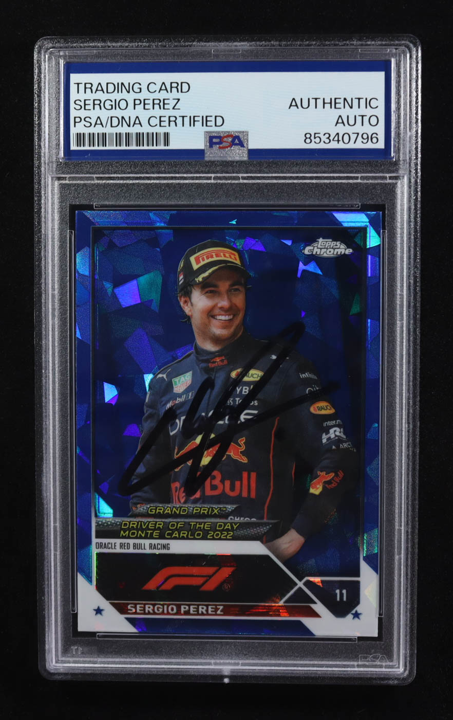 Sergio Perez Signed 2023 Topps Chrome Oracle Red Bull Racing Monte Carlo 2022 Blue Sapphire #172 (PSA)