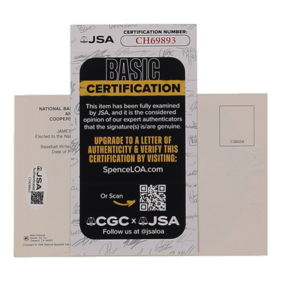 Jim Palmer Signed Hall of Fame Plaque Postcard (JSA)