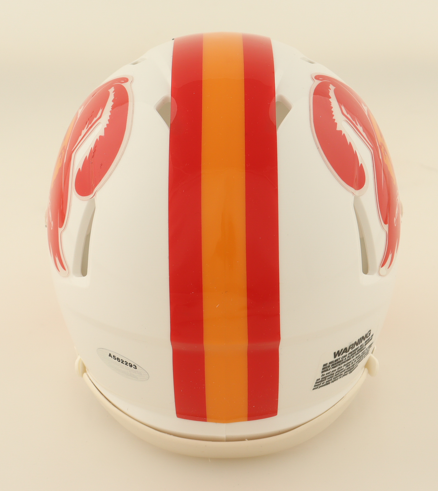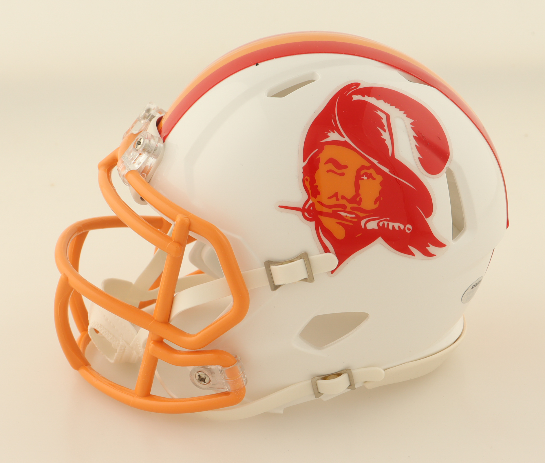 Riddell Tampa Bay Buccaneers throwback mini helmet. Hand-signed by Steve DeBerg.