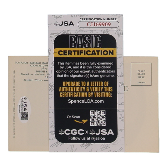 Joe Cronin Signed Hall of Fame Plaque Postcard (JSA)