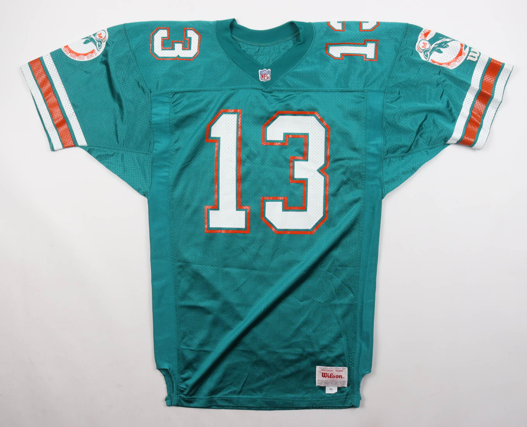 Wilson authentic jersey with everything sewn on, size 46. Hand-signed by Dan Marino (HOF). Please note, the signature is faint.