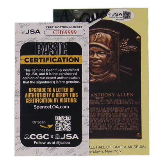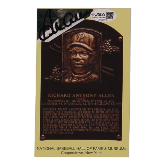 Dick Allen Signed Cut on Hall Of Fame Plaque Postcard (JSA)
