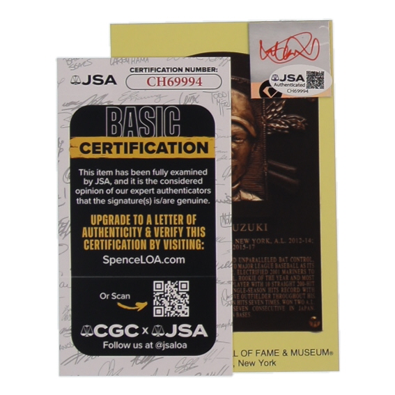 Ichiro Suzuki Signed Cut on Hall Of Fame Plaque Postcard (JSA)