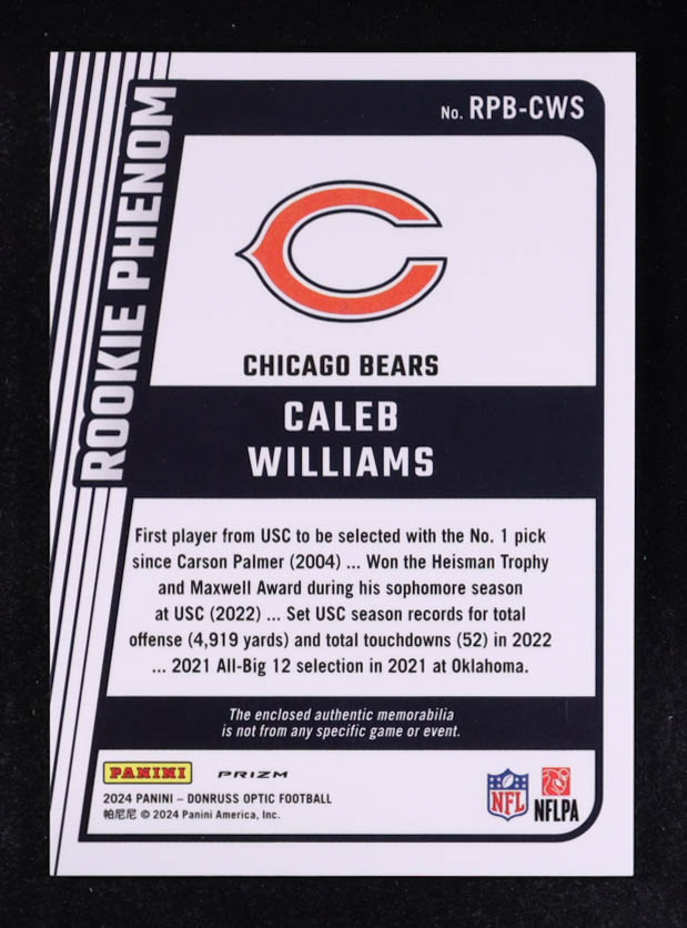 Caleb Williams 2024 Panini Donruss Optic Rookie Phenom Blue Hyper Prizm Patch #RPB-CWS RC