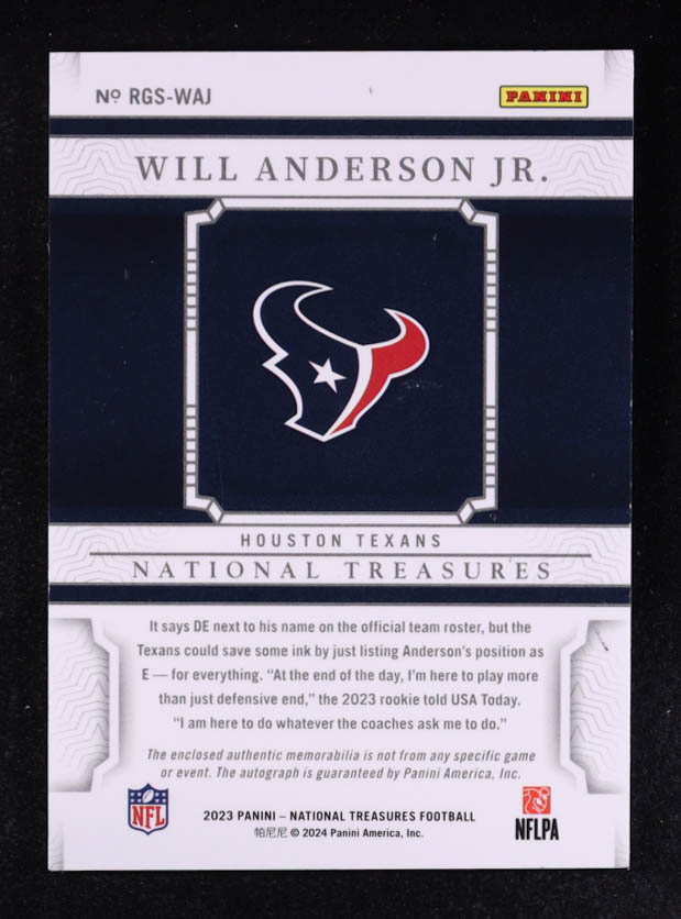 Will Anderson Jr. 2023 Panini National Treasures Patch Auto #RGS-WAJ RC #79/99