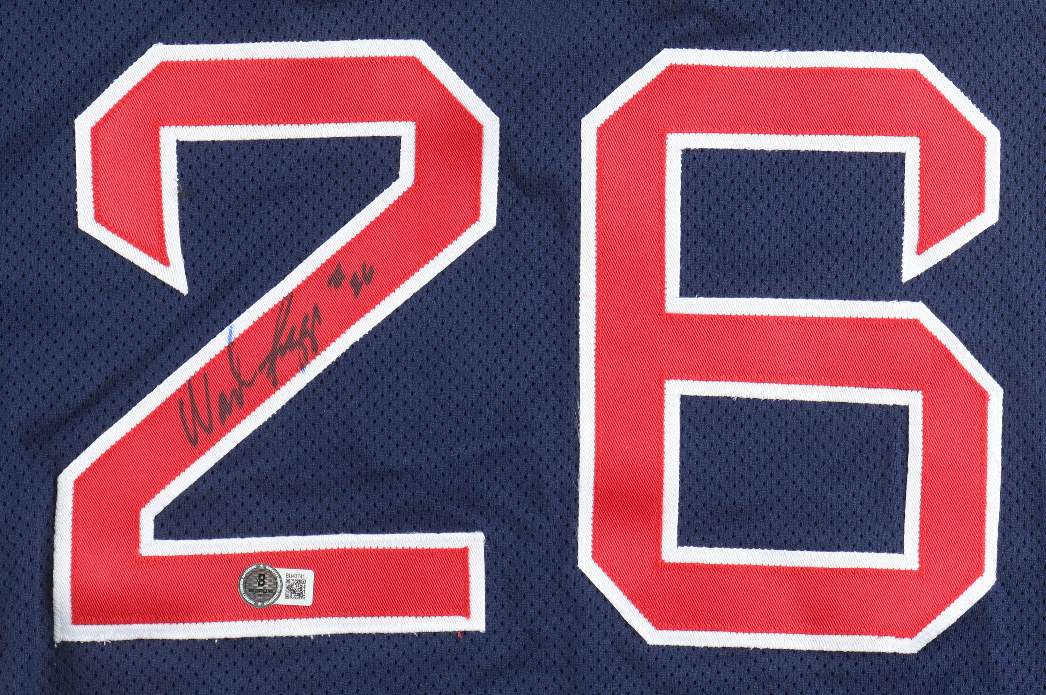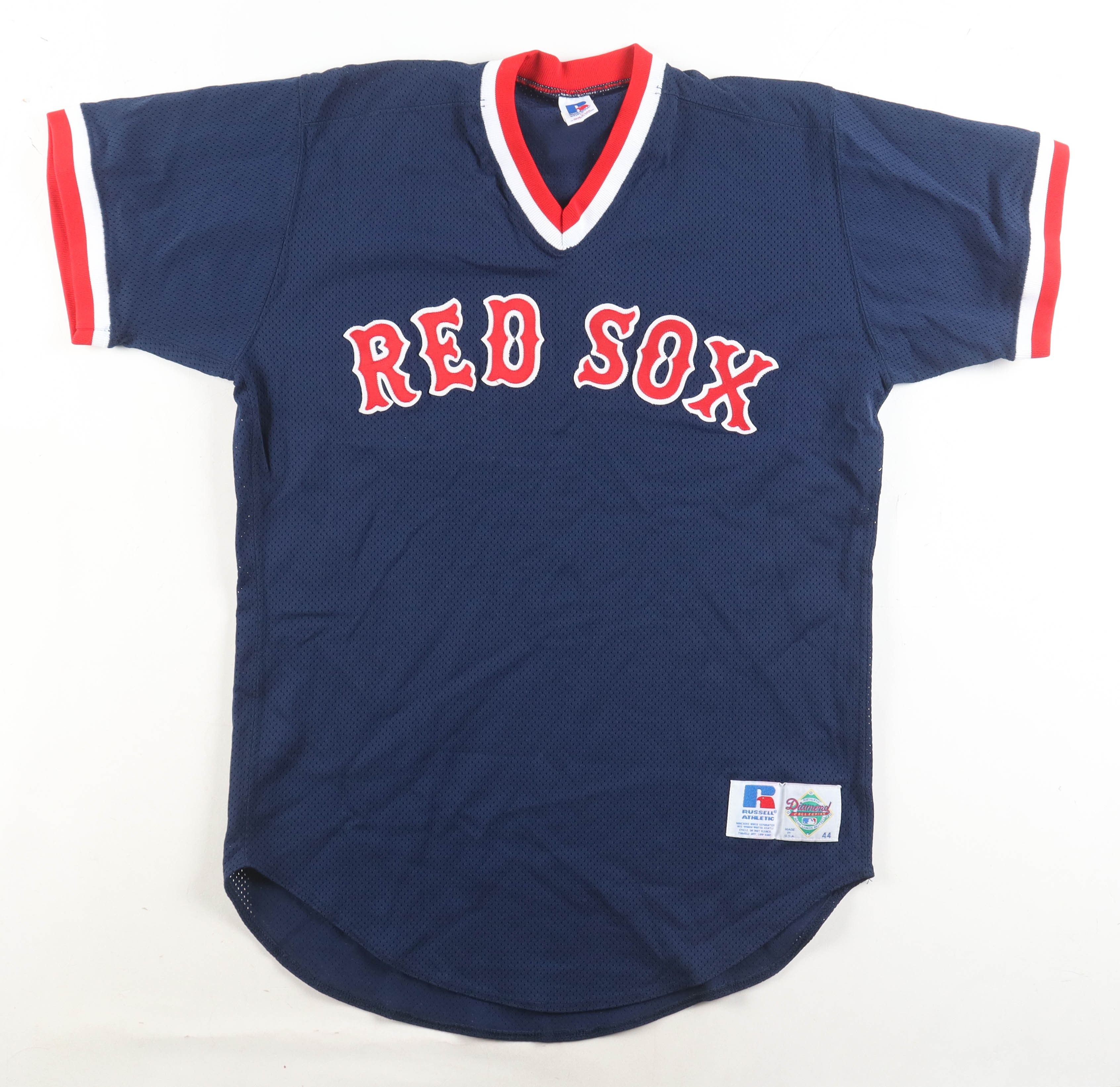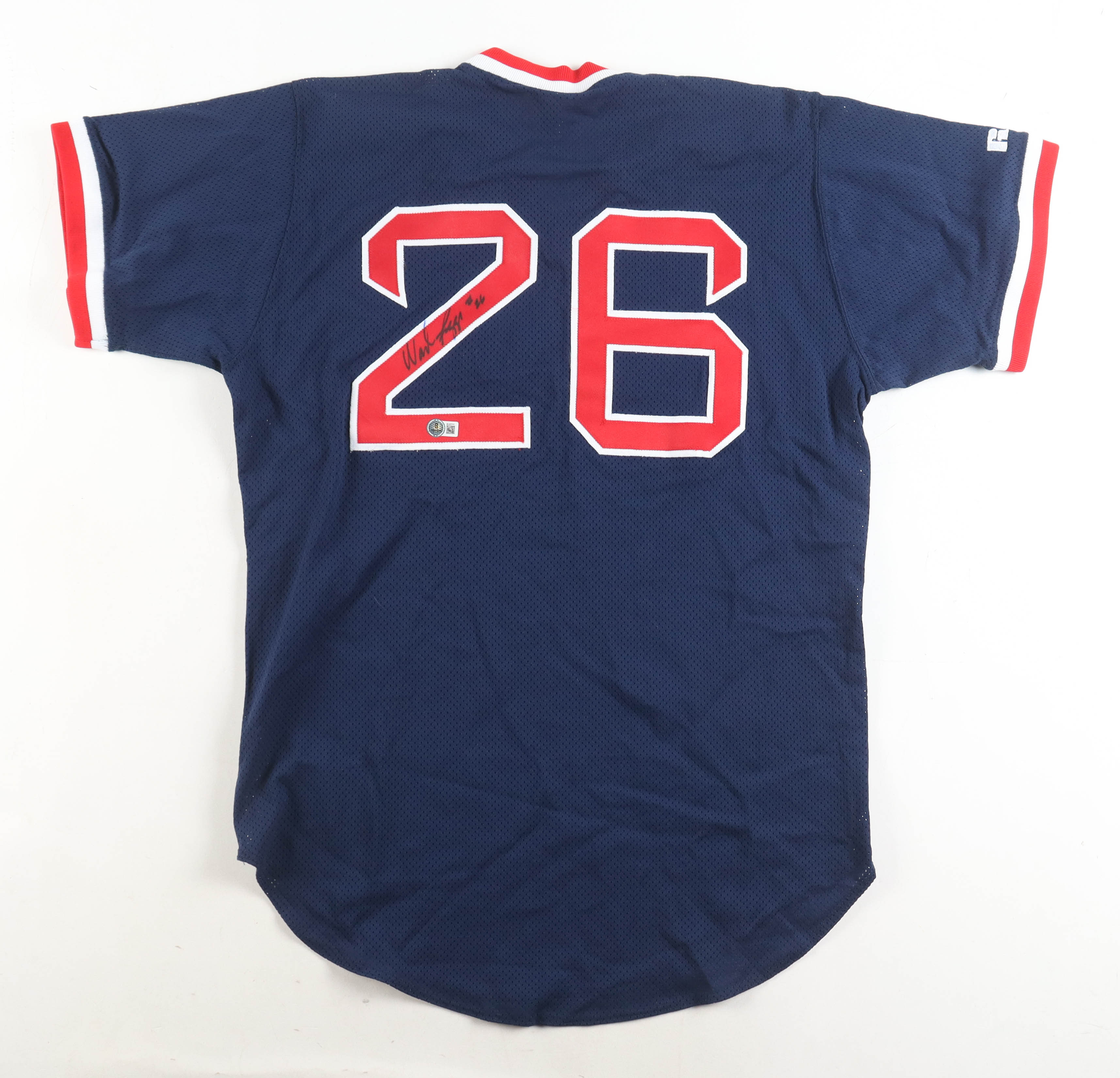 Russell authentic jersey with everything sewn on, size 44. Hand-signed by Wade Boggs (HOF).